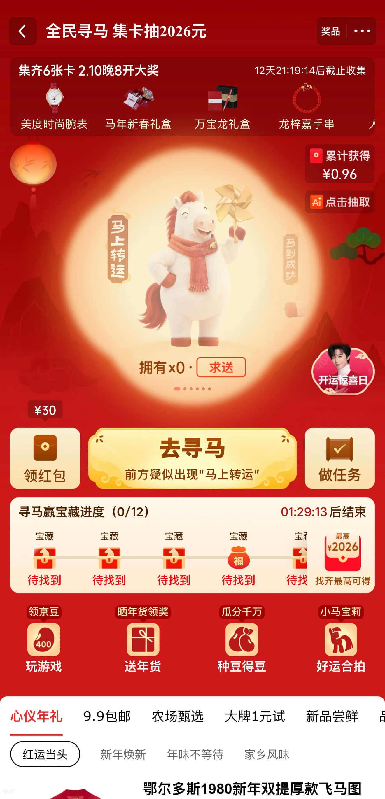 今天的快乐是京东爱家惊喜日给的!🎁 官方直降5折起,国补加补至高3000元!【全民寻马】活动太有意思了,每天扫一扫,大奖抱回家!从1月25日开始一直到2月23日,尤其是2.10、2.16、2.23这几天,开奖真的超刺激!只要打开京东APP右上角照相机,扫马就能进入互动,这波福利我不允许你不知道!😤快戳【网页链接】或搜“全民寻马666”上车!蔡明喊你来京东5折买家电家居 京东买年货 又好又便宜