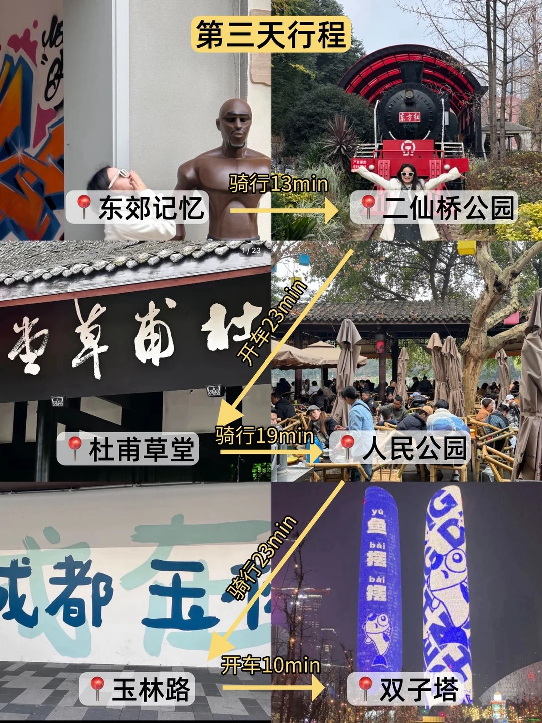 东郊记忆→二仙桥公园→杜甫草堂→人民公园→玉林路→双子塔