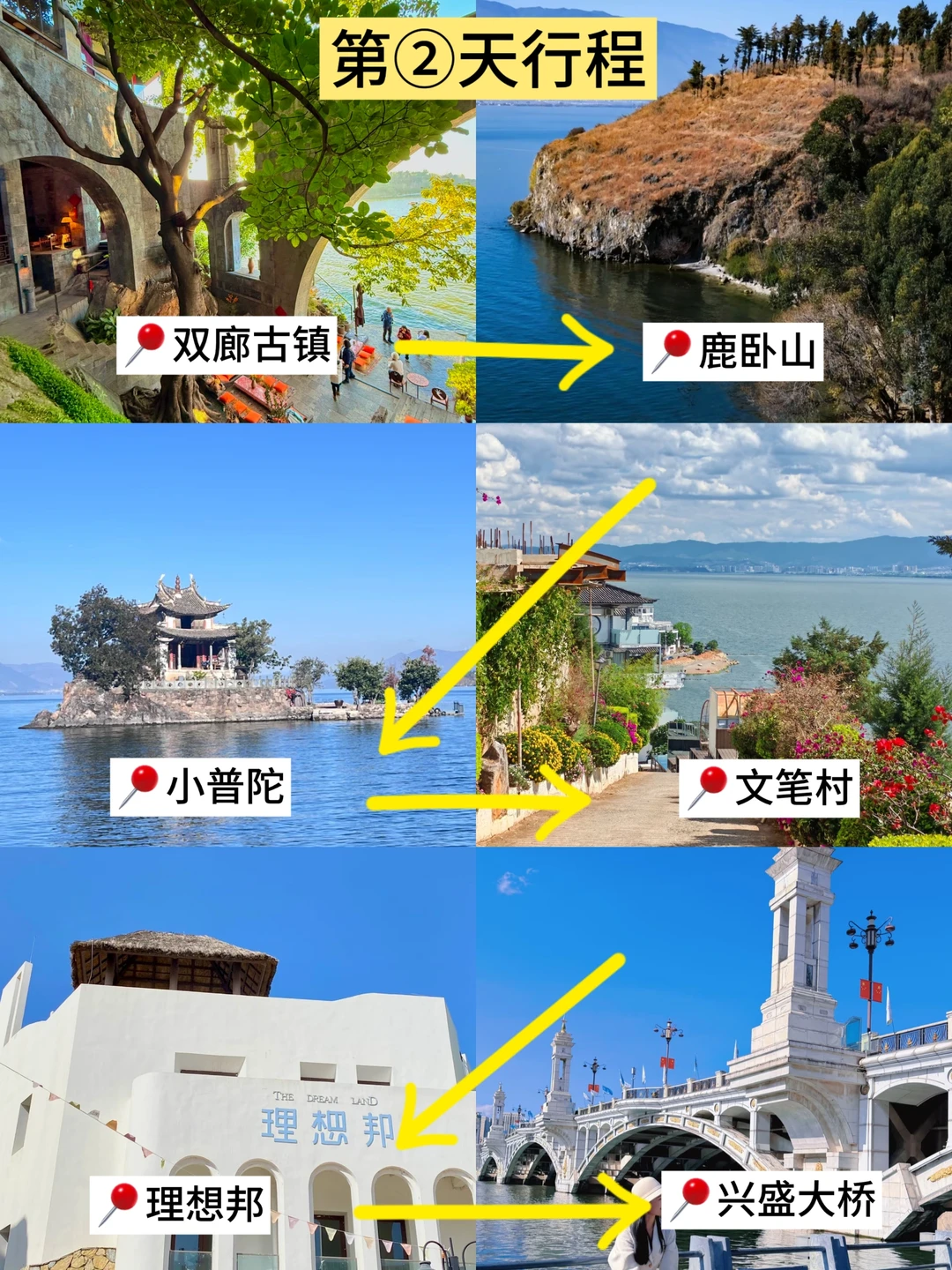 🔻双廊古镇:想近距离感受洱海美景的可以选择,周边环境好,有很多海景民宿可以选择