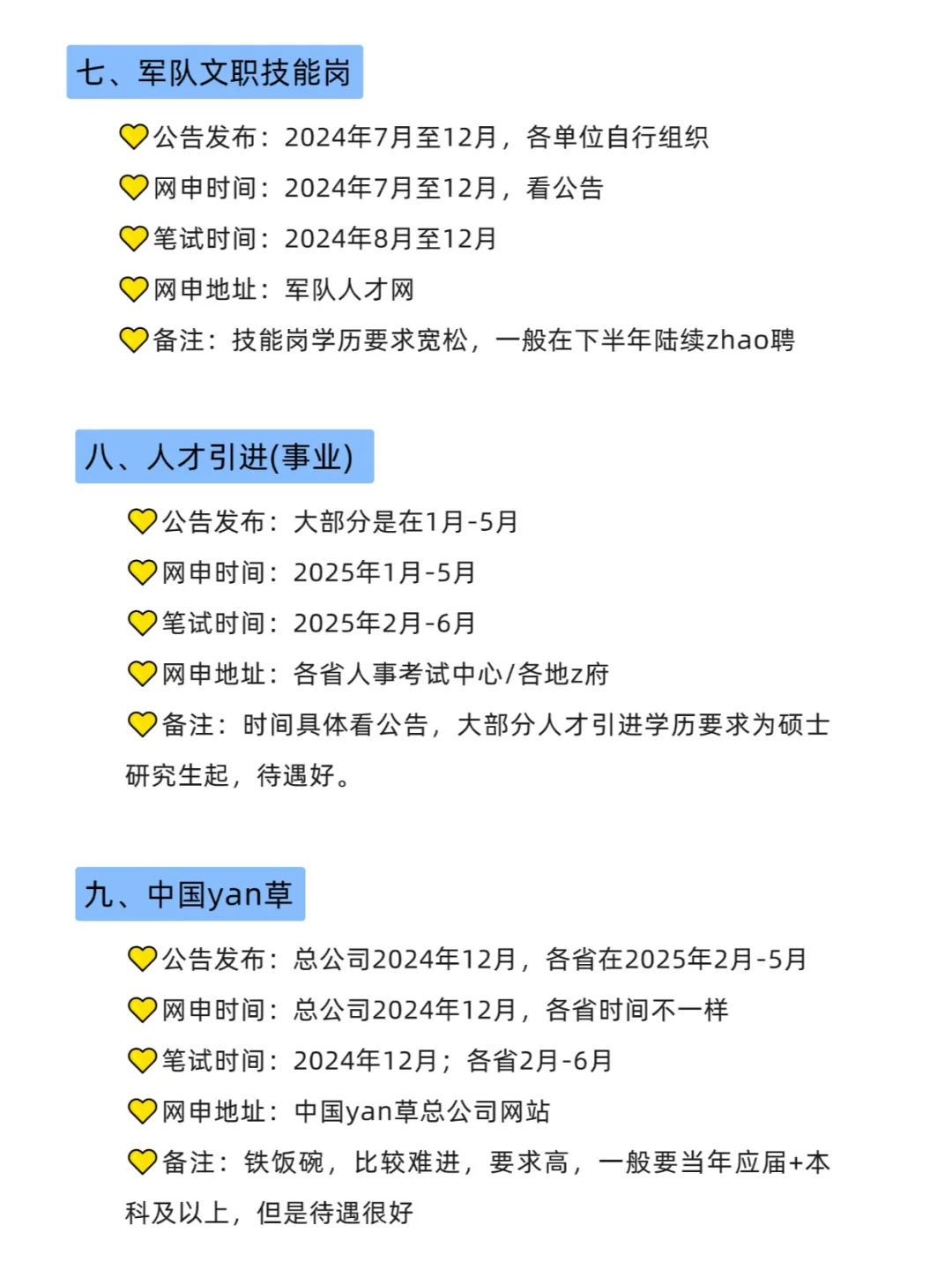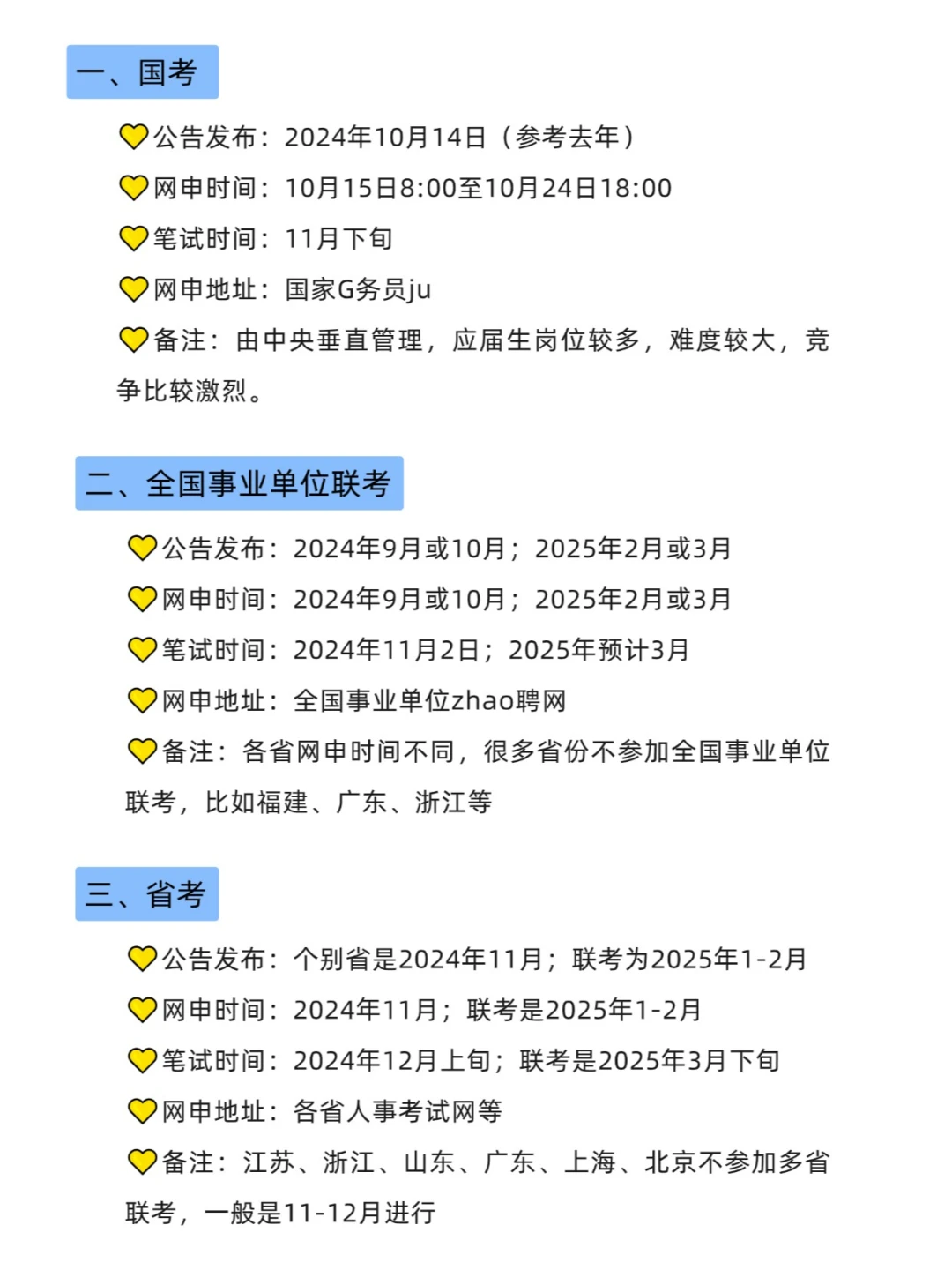 公告发布:个别省是2024年11月;联考为2025年1-2月