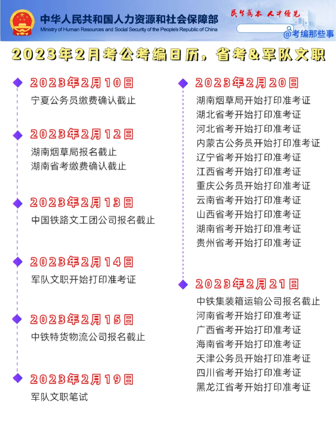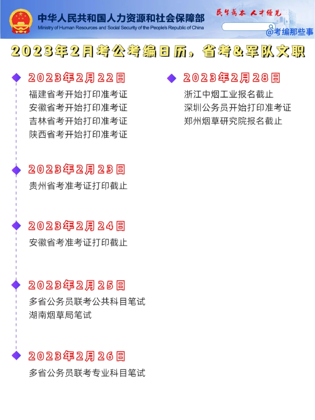 💛2月25日:多省公务员联考公共科目笔试;湖南烟草笔试
