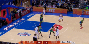 赵睿一防两传显功底,防守端精准抢断,快攻中不贪功送出绝妙甩传,贝利心领神会反击上篮得手,直接打停天津天津男篮vs北京男篮