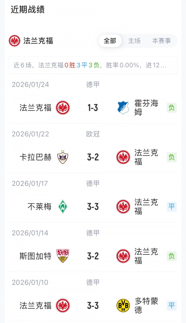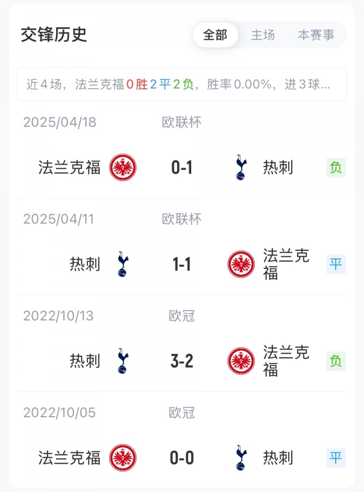 直播吧1月29日讯欧冠联赛阶段第8轮,法兰克福主场迎战热刺,赛前首发名单公布。