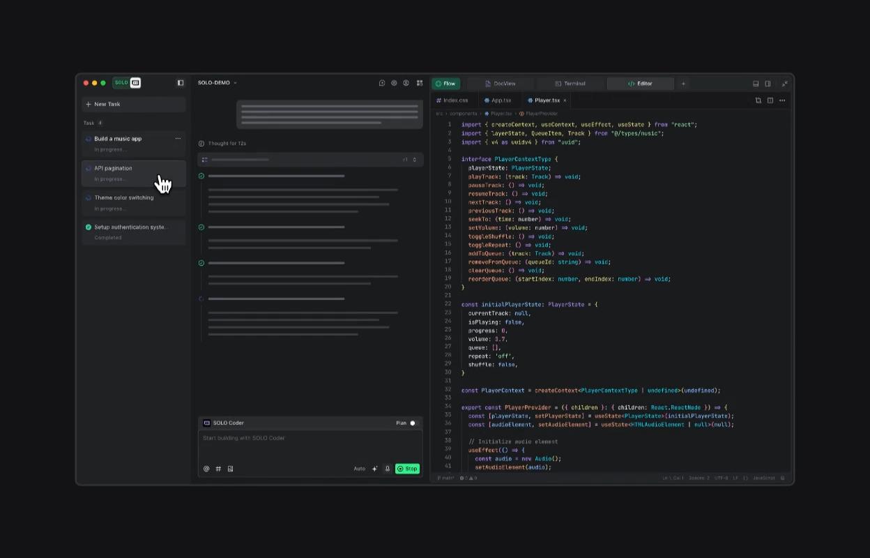 Solo 模式不是“黑盒”。当你提出一个需求时,它会先为你生成一份详细的“行动计划(Plan)”。你需要确认这份计划,AI 才会开始执行。在执行过程中,它的一举一动、在哪个文件做了修改、甚至在终端运行了什么命令,都清晰可见。这种透明度让你始终掌握主动权。