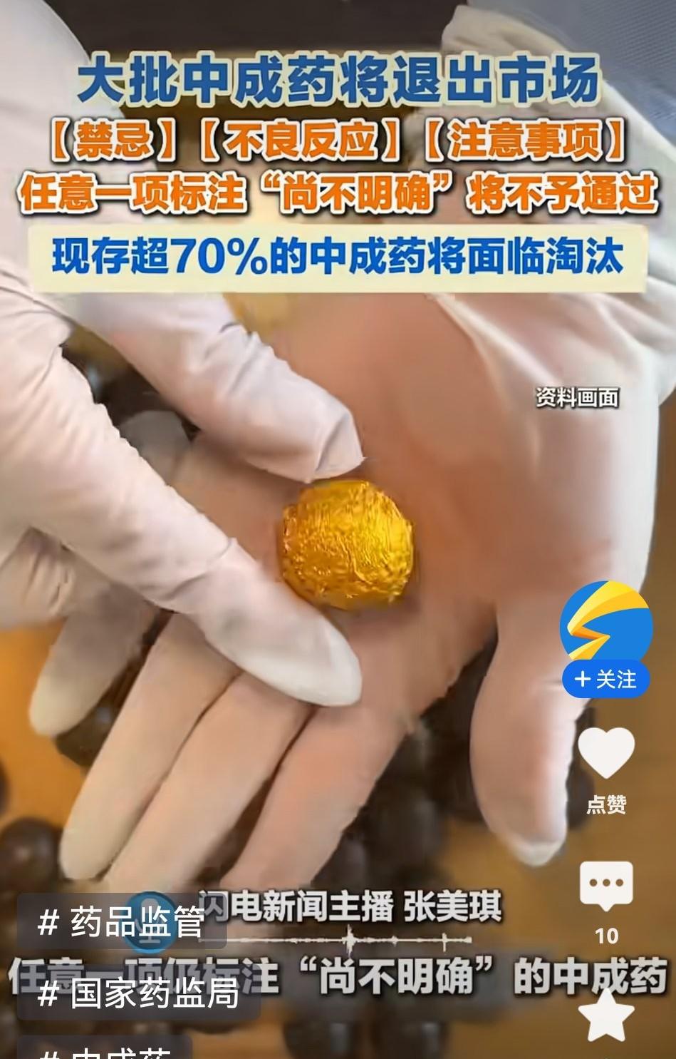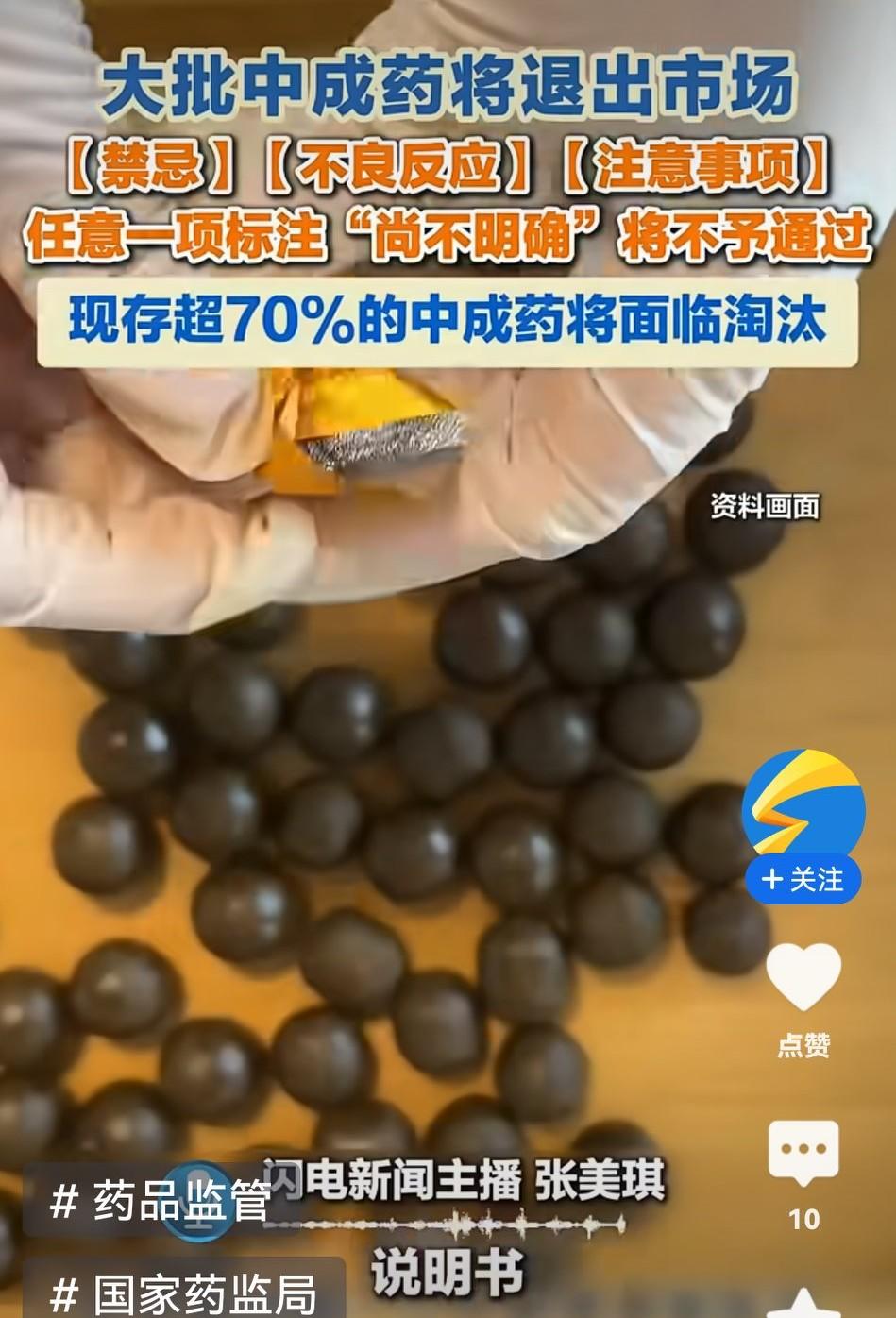 大洗牌!近4万种中成药将被淘汰,“尚不明确”时代彻底终结 我发现,咱们老百姓家里常备的那些中成药,马上要迎来一场“生死大考”了。 2026年7月1日起,国家药监局的“生死条款”正式生效。 这意味着,所有中成药的说明书里,禁忌、不良反应、注意事项这三项,只要有一项还写着“尚不明确”,药品就会直接被注销批文、停止上市。 对咱们普通人来说,这是个大好事。过去很多中成药说明书上“尚不明确”四个字,像个模糊的免责声明。 现在国家要求药企必须把这些风险写清楚,以后吃药心里更有底。但对整个行业来说,这是一场残酷的洗牌。 据行业统计,国内现存的5.7万个中成药批文中,有近4万个都存在“尚不明确”的问题。 这意味着,接下来半年到一年内,我们熟悉的不少常用药可能会从药店货架上消失。 这背后,是国家推动中医药行业从“经验驱动”向“数据驱动”转型的决心。 过去,很多中成药依赖传统经验传承,缺乏现代临床数据支撑。 如今政策要求药企必须补上这些安全数据,这不仅是为了保障用药安全,更是为了让中医药能真正走向标准化、现代化。 对于药企来说,留给他们的时间已经不多了。想要保住批文,就必须在半年内完成临床数据补充、说明书修订等工作。 这背后是巨大的资金和时间成本,实力不足的小企业很可能会被直接淘汰。预计未来3-5年,将有30%-40%的中成药批文退出市场,行业集中度会大幅提升。 说到底,这场大考不是要否定中医药,而是要让它走得更稳、更远。 只有把风险说清楚、把数据做扎实,才能让更多人放心用中药,也让中医药真正走向世界。 “模糊的免责,不如清晰的安心。这不仅是中成药的一场蜕变,更是我们每个人用药安全的一次升级。” 你家里常备的中成药里,有说明书写着“尚不明确”的吗?欢迎在评论区聊聊你对这次政策的看法。 (内容取材网络) 点亮〔收藏和赞〕让健康和爱都流向你