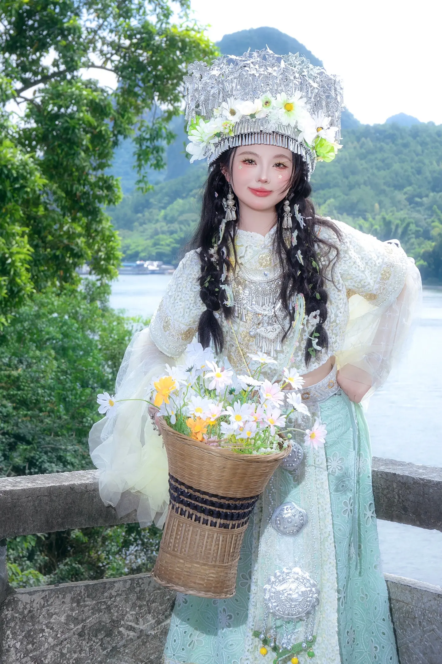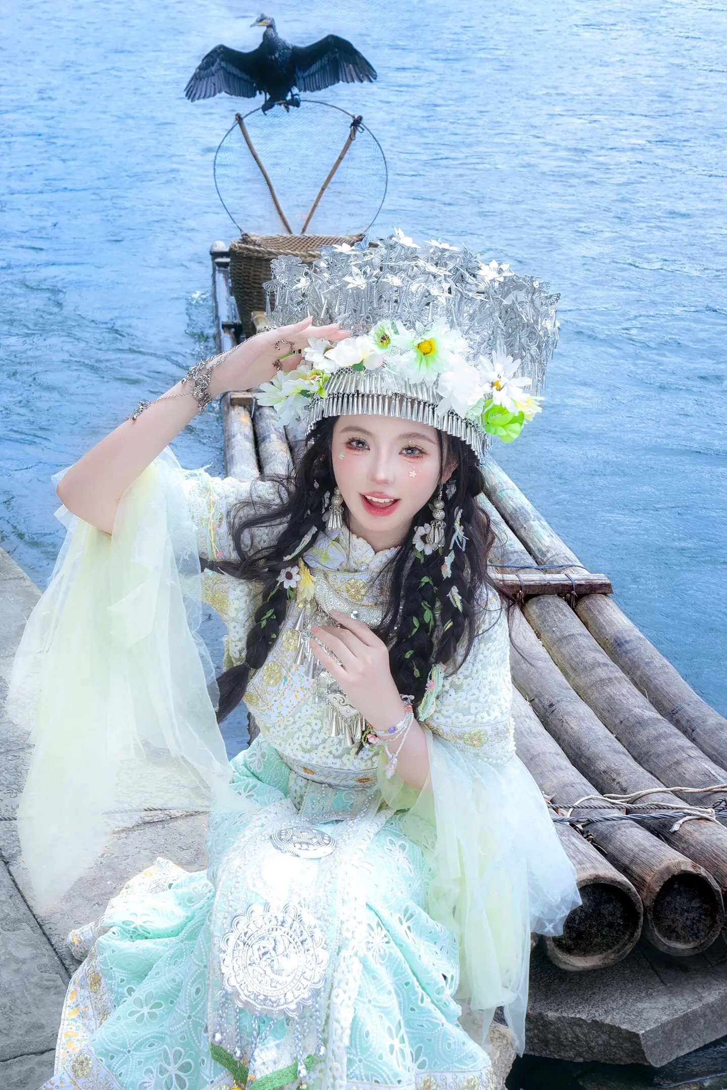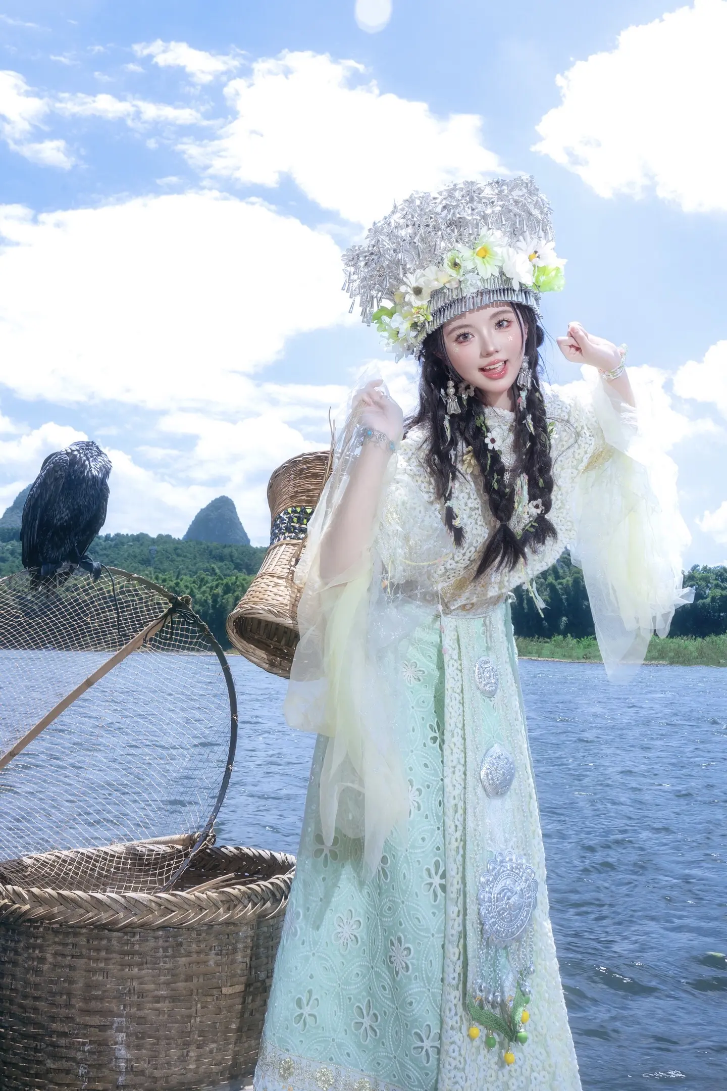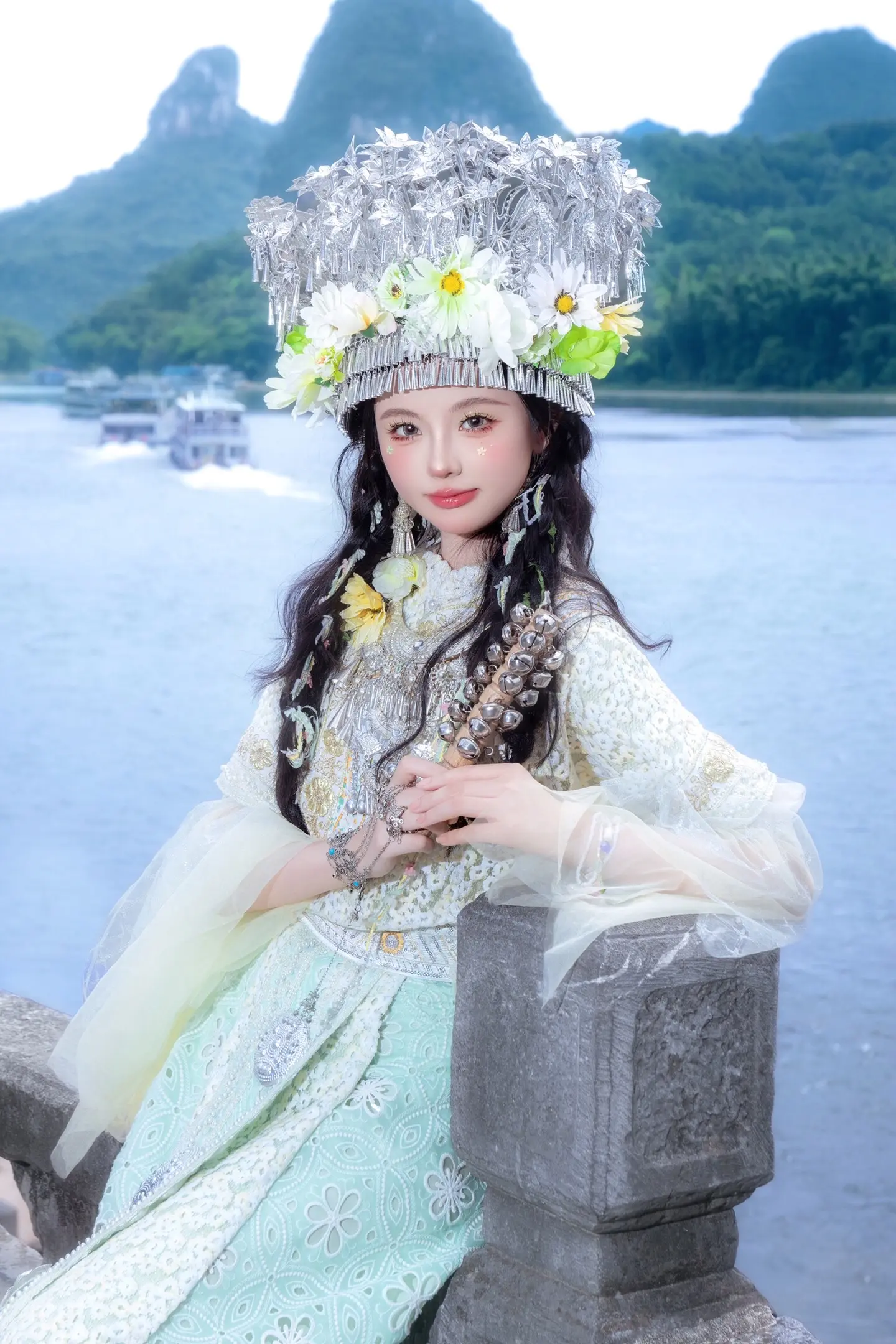 来阳朔总要当一次竹筏上的民族少女吧!