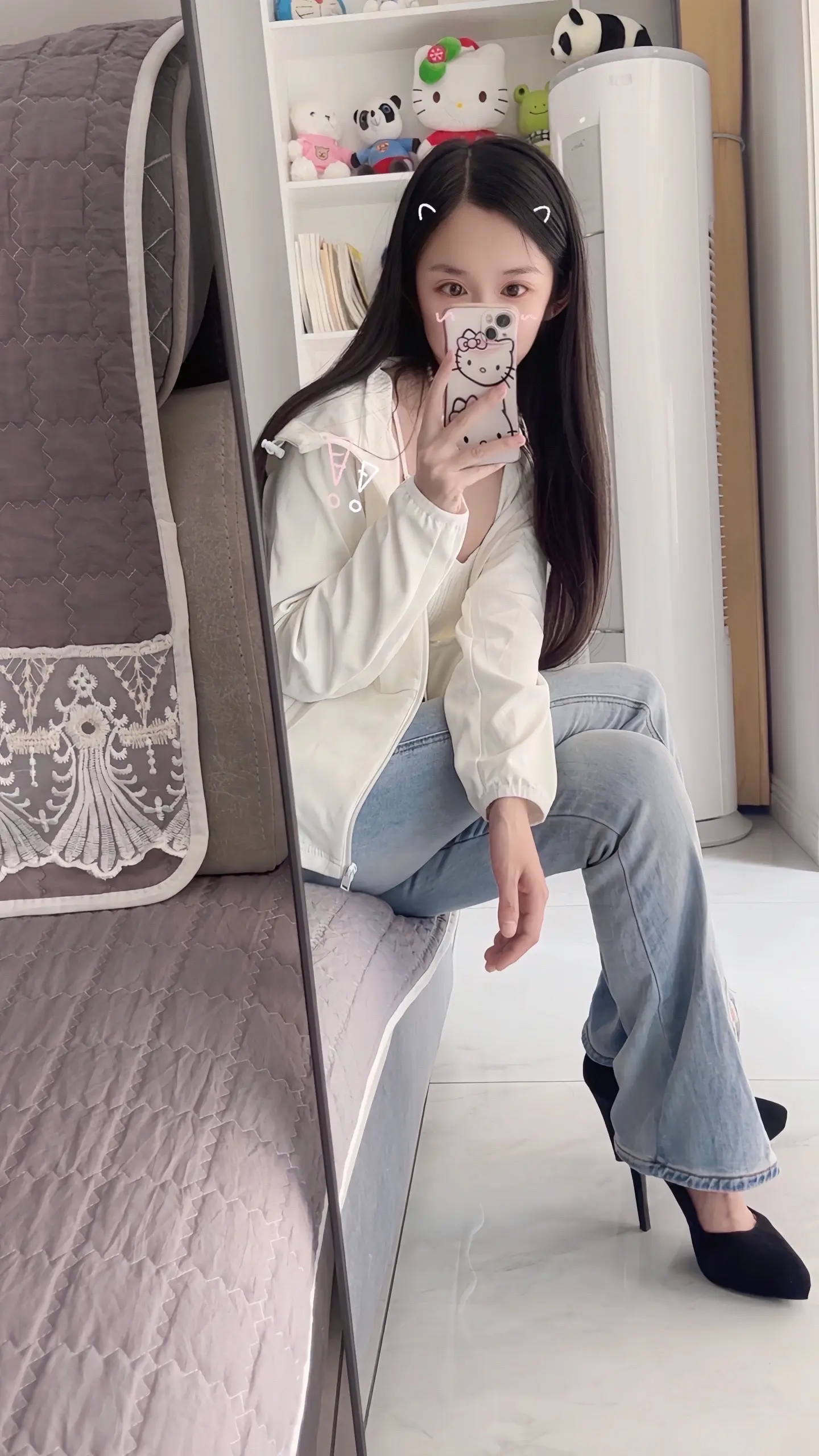 对镜拍清纯简单干净完美身材紧身牛仔裤