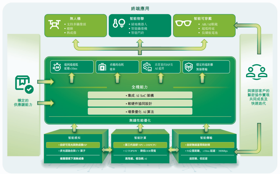 公司的产品已无缝集成于无人机、智能物联及智能可穿戴应用中,不断拓展应用场景并提升智能设备的实用性。