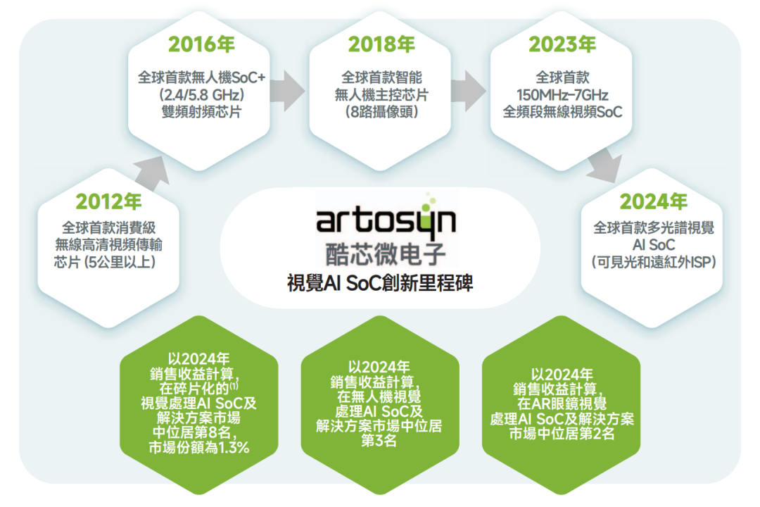 酷芯微电子的业务涵盖无人机、智能物联及智能可穿戴三大核心应用场景,视觉处理AISoC在智能控制、视频传输及端侧边缘计算中发挥关键作用。视觉处理AISoC及解决方案市场在中国及全球范围内均录得大幅增长,这主要得益于高性能视觉计算在多元化应用场景中的广泛渗透。