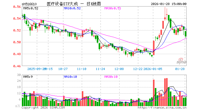 1月28日,医疗设备ETF大成(516610)跌2.30%,成交额416.41万元。当日份额增加100.00万份,最新份额为1.78亿份,近20个交易日份额增加200.00万份。最新资产净值计算值为9037.56万元。
