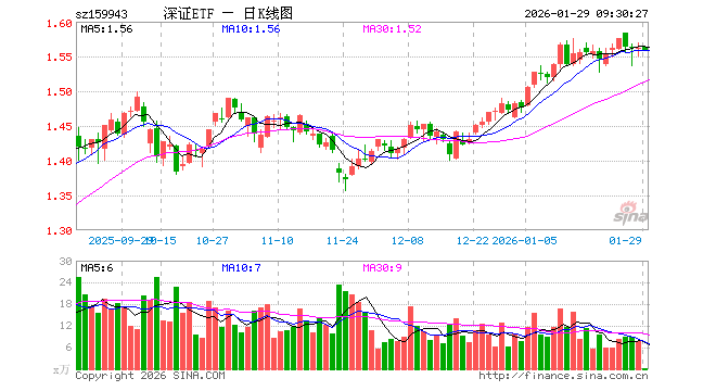1月29日,深证成指ETF大成(159943)开盘涨0.06%,报1.563元。深证成指ETF大成(159943)重仓股方面,宁德时代开盘涨0.15%,中际旭创涨1.43%,新易盛涨1.77%,美的集团涨0.48%,东方财富跌0.53%,立讯精密跌0.53%,阳光电源涨0.07%,比亚迪跌0.73%,五粮液涨0.00%,北方华创跌1.00%。