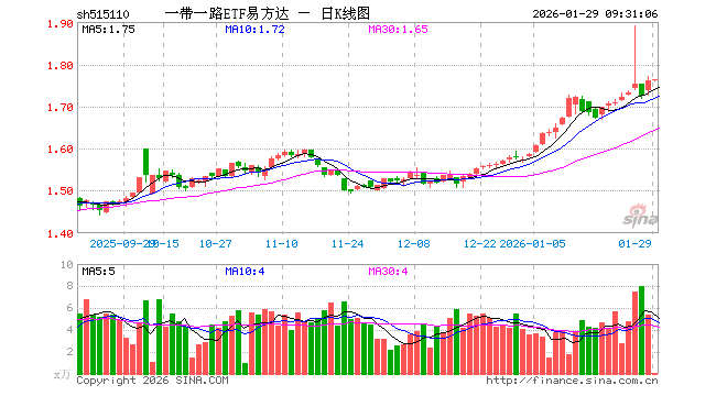 1月29日,一带一路ETF易方达(515110)开盘涨0.00%,报1.760元。一带一路ETF易方达(515110)重仓股方面,小商品城开盘涨0.06%,金风科技跌0.83%,中国铝业涨2.81%,烽火通信跌1.78%,东阿阿胶跌0.40%,南网能源涨0.00%,广东宏大跌0.26%,云铝股份涨1.84%,建设银行涨0.23%,中国联通跌0.39%。