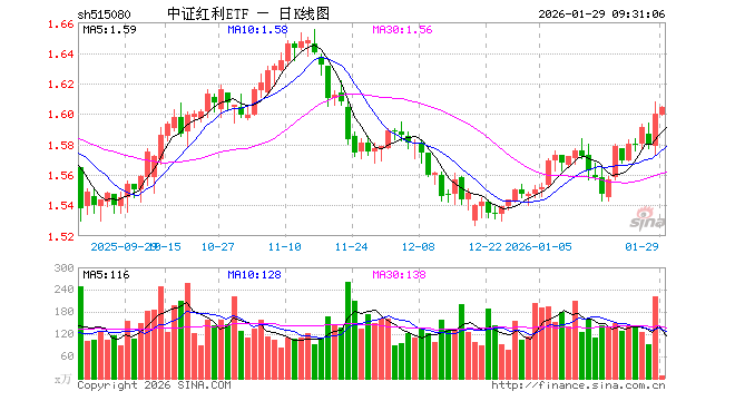 1月29日,中证红利ETF(515080)开盘跌0.06%,报1.599元。中证红利ETF(515080)重仓股方面,中远海控开盘涨0.00%,广汇能源涨1.58%,中谷物流涨0.00%,山煤国际跌0.27%,平煤股份涨0.12%,潞安环能跌0.71%,鄂尔多斯涨1.17%,山西焦煤涨0.56%,陕西煤业涨0.91%,西部矿业涨0.71%。