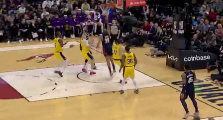 泰森直捣黄龙上篮再中,骑士第三节领先湖人15分