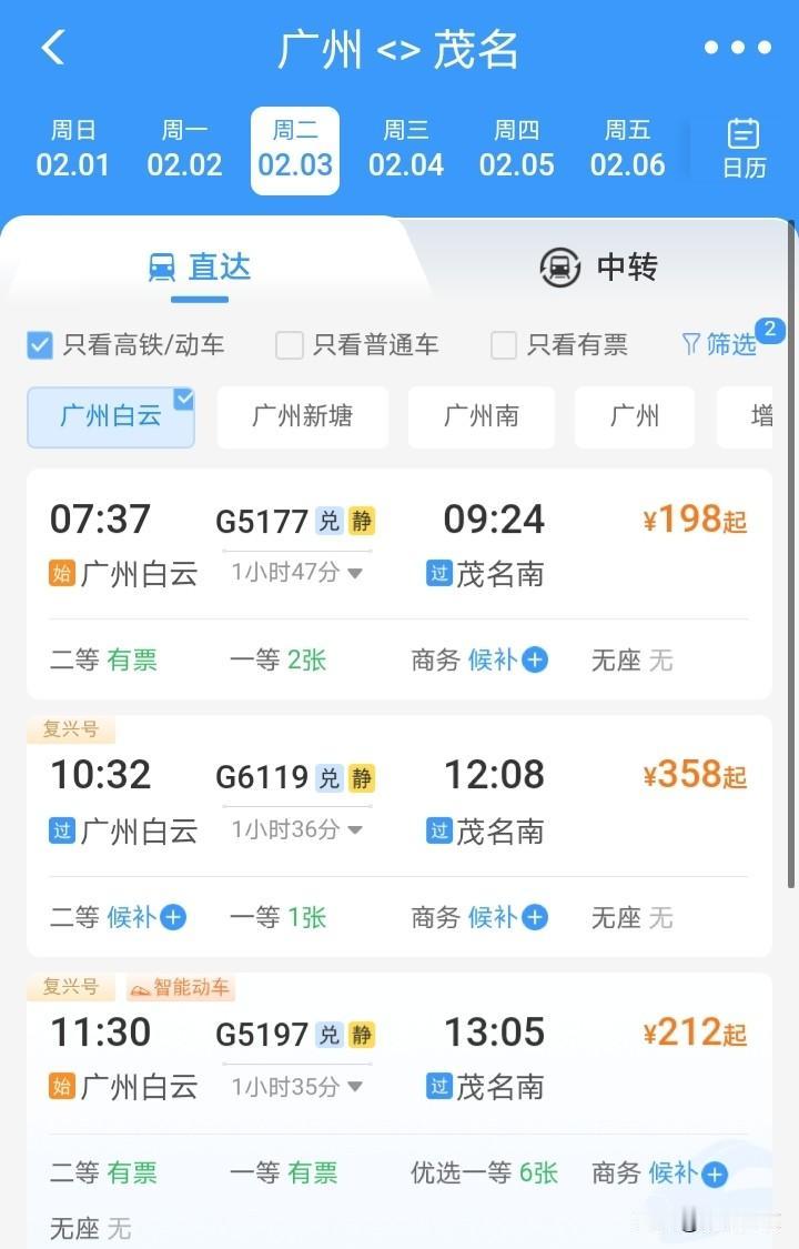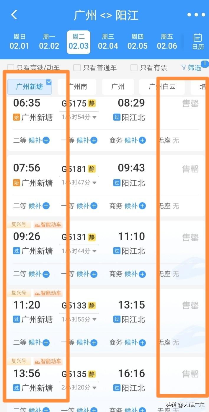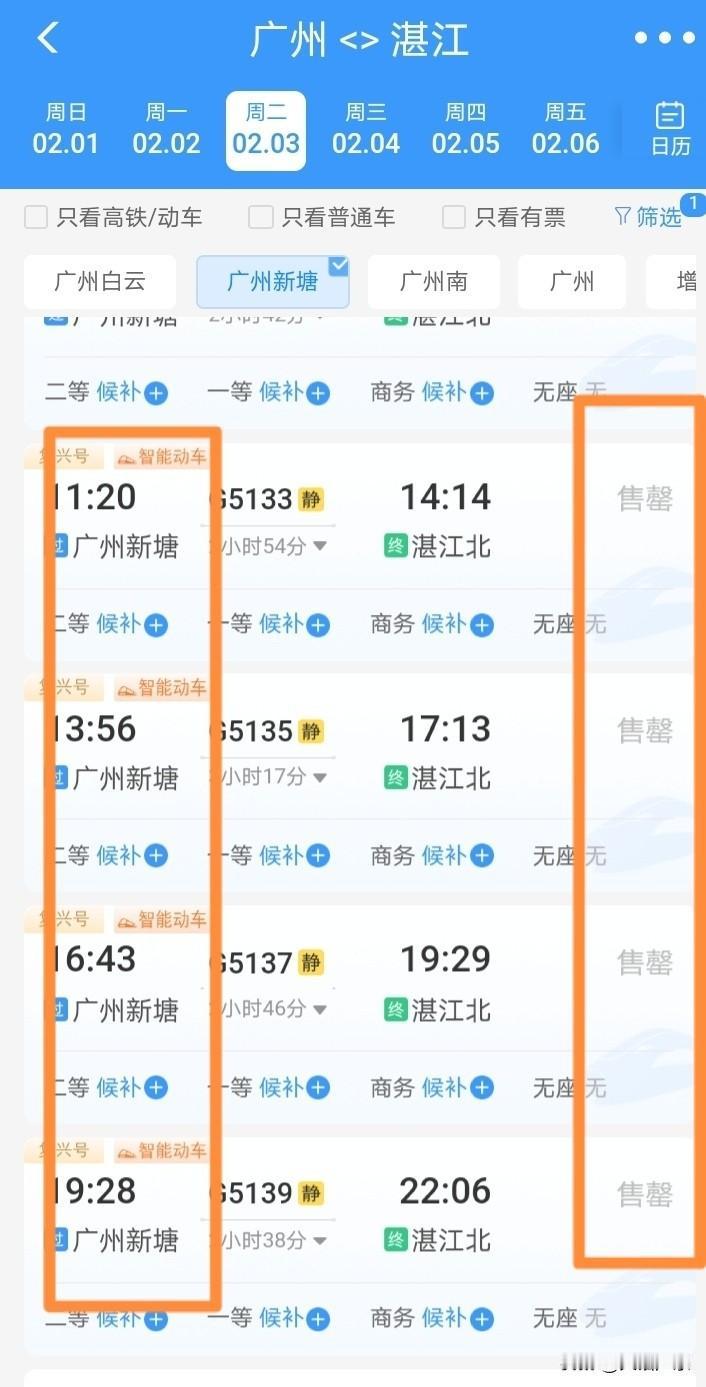 说广州增城新塘高铁没客流的,这次打脸了!增城新塘站高铁一票难求!广州白云站大量余票! 广湛高铁开通,广湛高铁直达白云站,广州其他站点无法坐广湛高铁,部分网友质疑广州白云站太偏僻,没多少广州其他区的人愿意去坐,希望增加广州站,广州东站,增城站,新塘站直达广湛高铁的班次! 部分网友质疑增城新塘没客流,现在数据一出,一目了然,冰火两重天!增城新塘往湛江茂名阳江方向高铁基本售空! 而广州白云站和广州南站缺大把余票!数据不会说谎,哪里需要,哪里不需,一目了然! 广州高铁北站 广州南站站台 广州南站人从众 广州高铁候车室 广州城轨堵人 广州高铁攻略 新塘高铁站