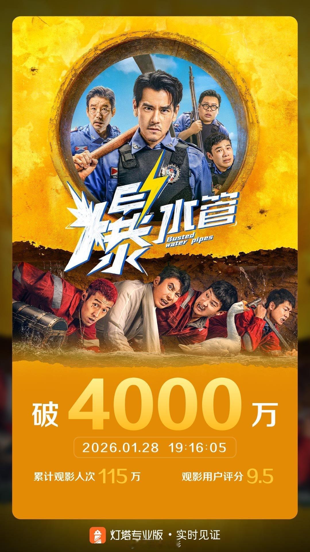 爆水管票房破4000万喜剧犯罪电影《爆水管》上映6天,票房超4000万。彭于晏、艾伦、杨皓宇几位老师演的老逗乐了。我等网络视频平台上线了,再刷一遍。田宇院线播报