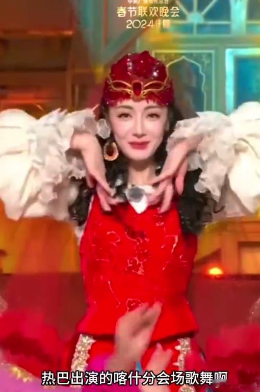 2024 春晚分会场舞台之上,迪丽热巴让新疆石榴花的美绽放在新春时刻。新春舞台因