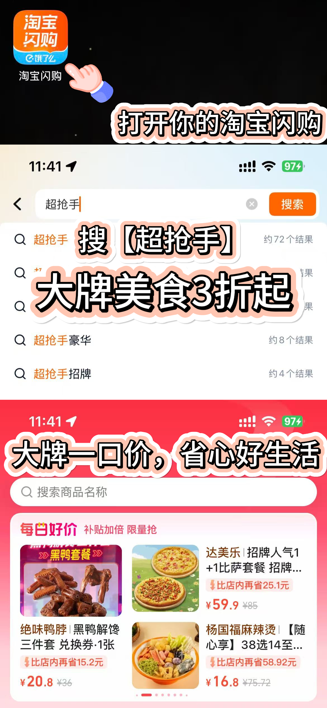 搞定全家老小的口味,其实只需一个淘宝闪购超抢手:肯德基京卷辣堡乐享双人餐(8件套)44.9元起满足孩子,西贝莜面村胡萝卜土豆炖牛腩焖饭26元起适合长辈,超抢手必买清单汇聚超多一口价大牌美食,解决众口难调。上淘宝闪购搜【超抢手】,大牌美食3折起!马上就到冬至,超抢手还能帮你解决冬至家宴,省下反复挑选食材的心思留给家人团聚的时光~超抢手省心好生活汪苏泷喊你上超抢手吃顿省心饭