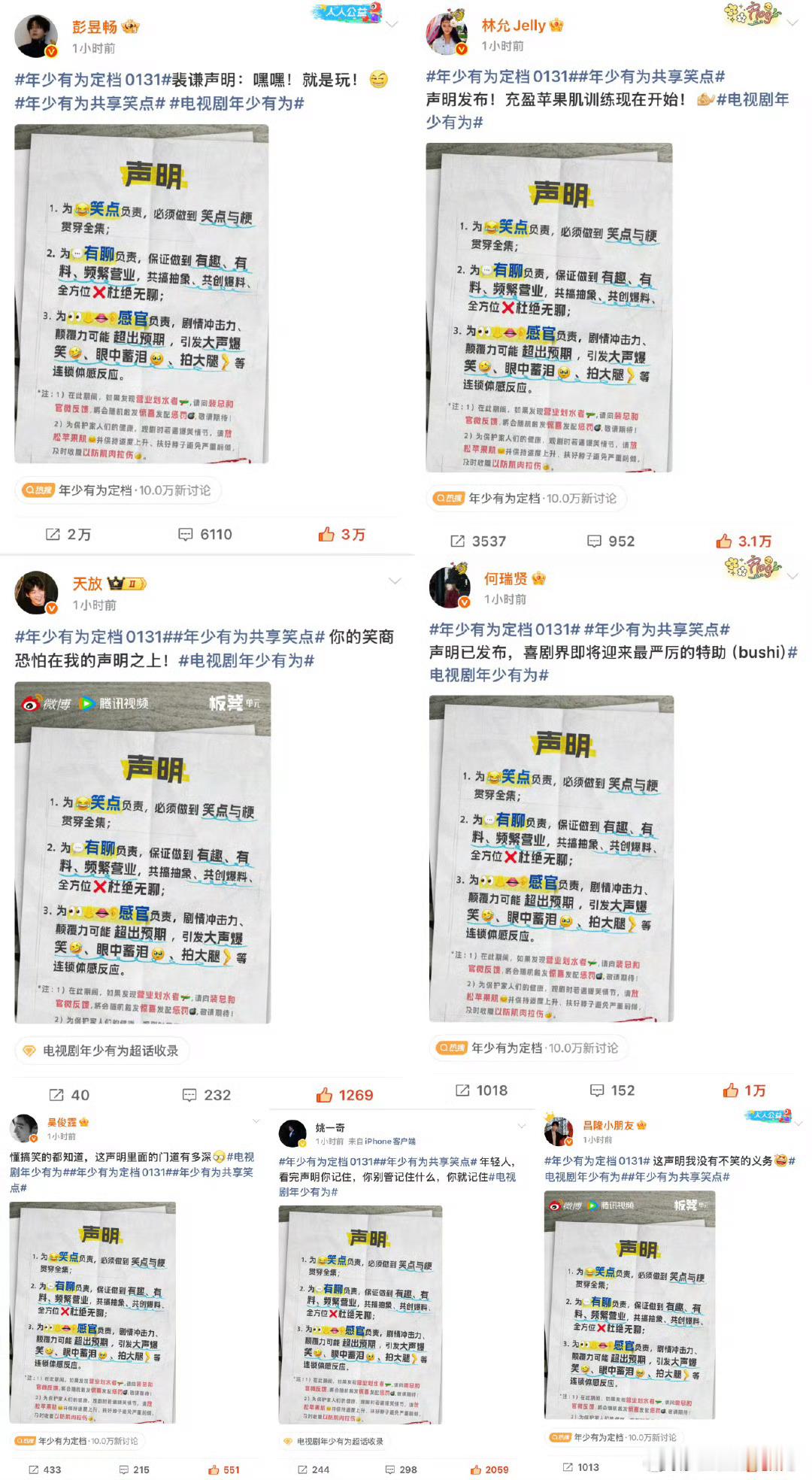 一小时前定档一小时后发声明《年少有为》刚定档就发搞笑声明,剧组也太会整活了!带薪
