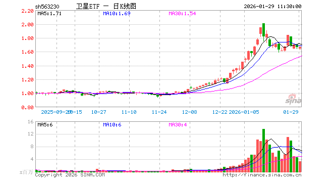 卫星ETF(563230)业绩比较基准为中证卫星产业指数收益率,管理人为富国基金管理有限公司,基金经理为曹璐迪、殷钦怡,成立(2025-09-04)以来回报为66.28%,近一个月回报为24.72%。