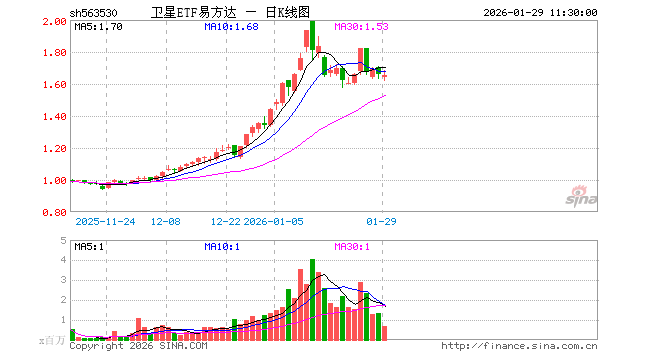卫星ETF易方达(563530)业绩比较基准为中证卫星产业指数收益率,管理人为易方达基金管理有限公司,基金经理为张泽峰,成立(2025-11-05)以来回报为65.25%,近一个月回报为24.55%。