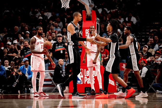 马刺官方赛后晒出赛场照,并附文:“晚安,休斯顿!”