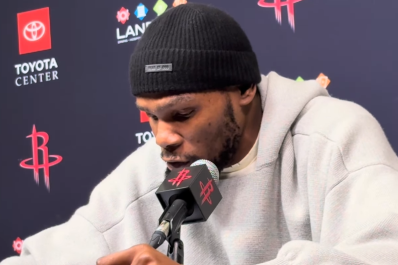 虎扑01月29日讯NBA常规赛,火箭99-111不敌马刺。赛后,凯文-杜兰特接受了媒体采访。