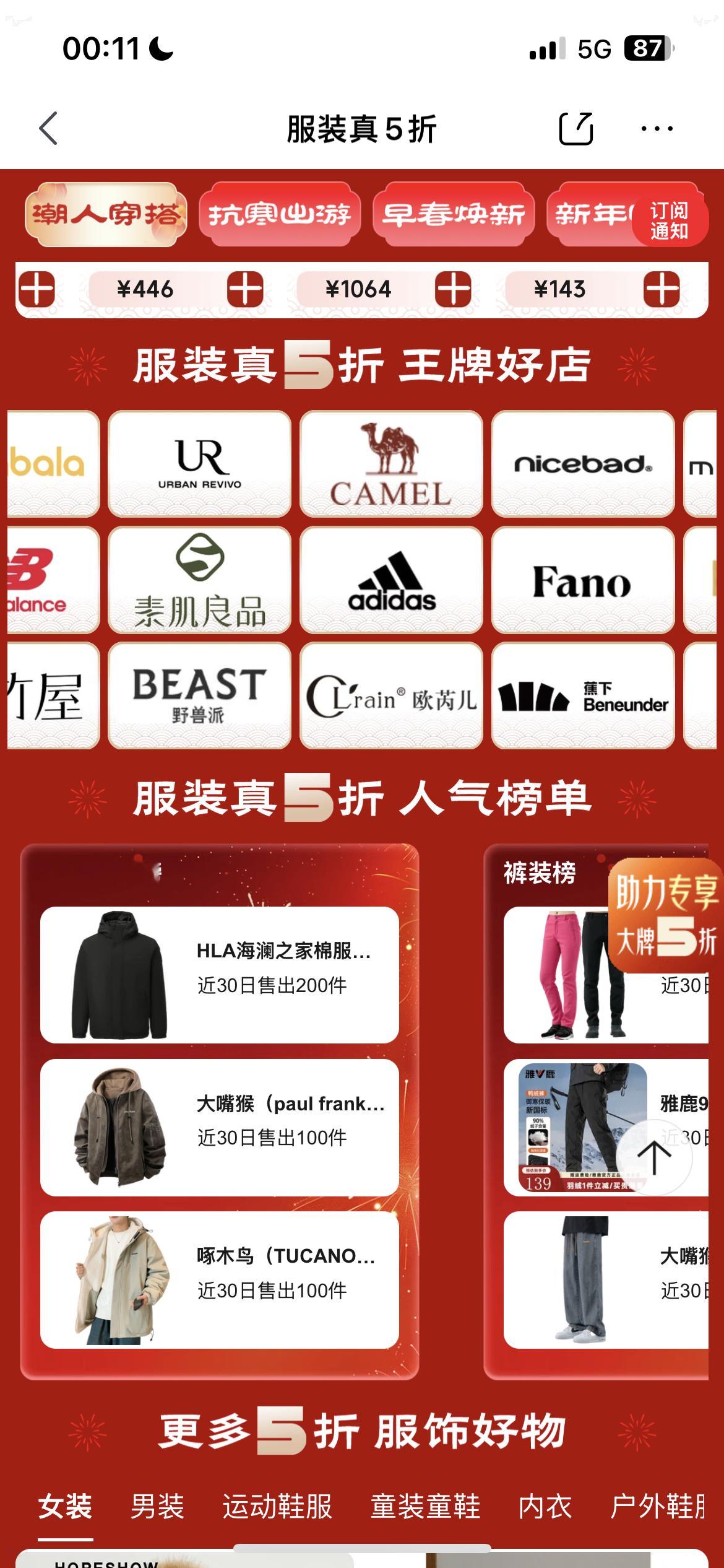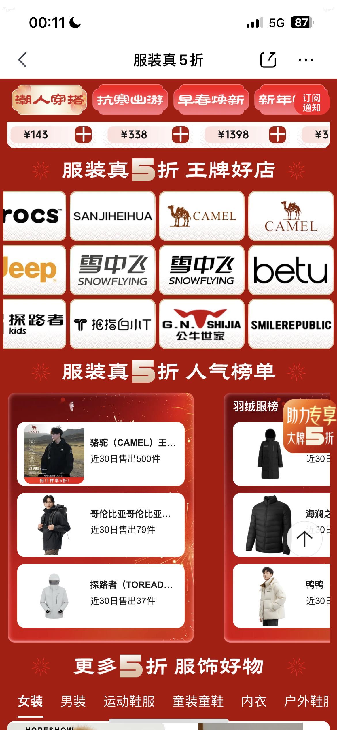 刷到京东服装真5折一年4次,本来只想买件过年红毛衣,结果逛到停不下来!打开京东搜【服装真5折】或戳【网页链接】,满1元立享5折,不用凑单满减,3张5折券,叠加最高减1650元,比线下门店便宜太多,太适合打工人囤通勤装了!波司登、全棉时代、有棵树等1000多个大品牌都在列,京东超多明星同款羽绒服5折,顺手给全家备齐了新年新衣。我要把买服装上京东,今天下单明天就到,完全不耽误穿新衣服~