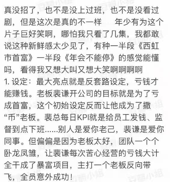 啥剧一半西虹市首富一半年会不能停《年少有为》这设定太有意思了!职场段子超多还反套