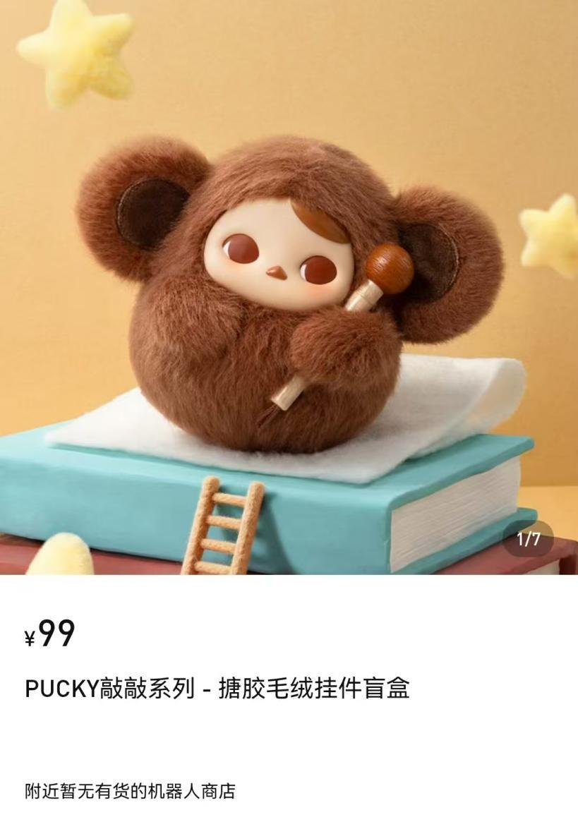 近日,泡泡玛特新推出了“PUCKY敲敲系列”毛绒挂件盲盒,因轻拍即可发出清脆木鱼声,被网友戏称为“电子木鱼”,相关话题火速登上微博热搜。同时,该盲盒每款还标注“财富+1”“快乐+1”等吉祥寓意,也被视为“打工治愈神器”。