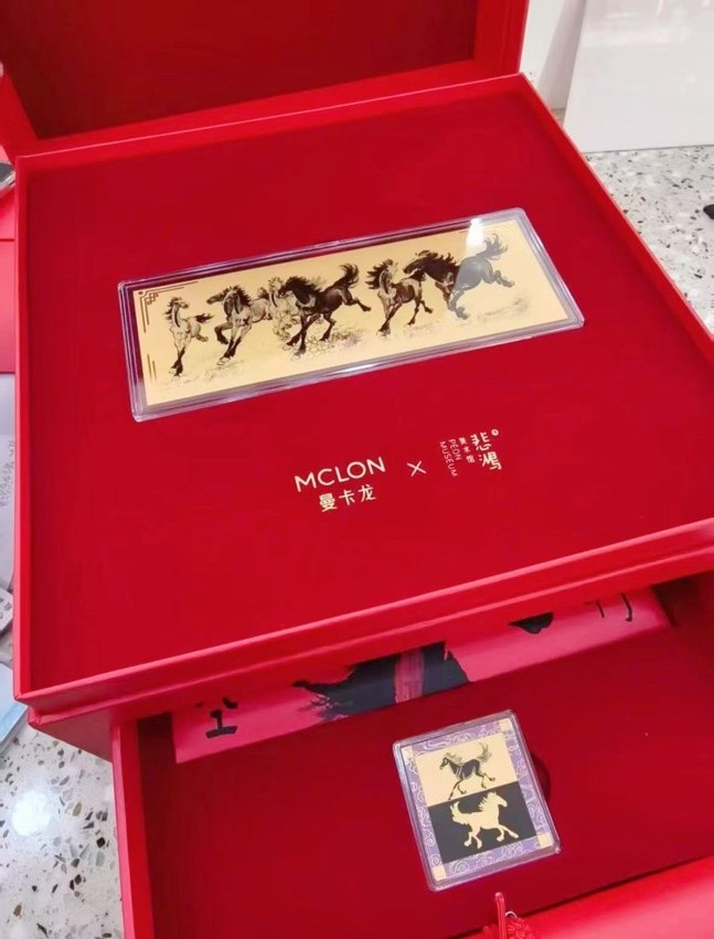 徐悲鸿美术馆联名系列里的1克重金钞,还有红色包装礼盒