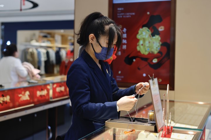 坊间有句老话:赶涨不赶跌。金价疯涨,也没挡住杭州年轻人的囤金潮。橙柿互动记者在武林银泰百货的黄金柜台了解到,农历新春前夕,黄金饰品销售在商场优惠力度的加持下,掀起一股“小阳春”:大克重的马年摆件和传统花式手镯,小克重的金钞、生肖转运珠等,都是热门单品。而年轻人更喜爱的黄金IP联名款,成为二次元爱好者们争相收藏的“谷子”。