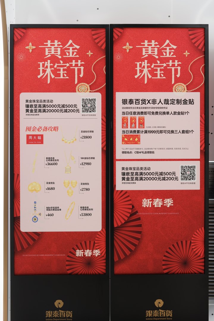 “考虑到节前消费者的购金需求,商场最近特别推出了新春季黄金珠宝节,有满减的活动,也有消费送定制金贴的礼遇。”杭州银泰百货相关工作人员表示。年前还想“囤”金的,正好可以借助这一波优惠挑挑看,省心省力又省钱。