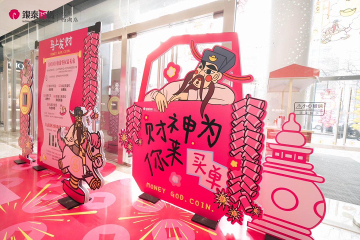 西湖银泰百货适逢新春推出的是“马上发财”IP杭州首展。现场不仅能“摇一摇“发财树,祈福新的一年财神驾到,还能跟“马上有钱”“马上击掌”来个互动,实现对新一年的美好期待。此外,新春写福、非遗演出、DIY体验等热闹年俗活动,届时也将陆续上演。