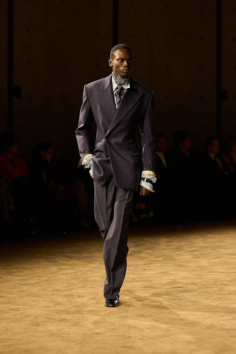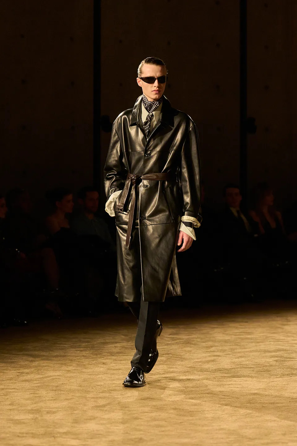 圣罗兰巴黎男装大秀in!爆款单品盲猜这仨:宽肩廓形西装|漆皮系带风衣|皮草手袋,