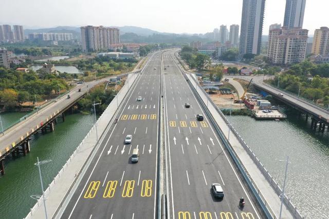 据介绍,增城雁塔大桥由原双向四车道拓宽为双向八车道,项目全长1.71公里,其中新建的桥梁段全长628.8米,整幅桥宽46.5米,两侧设置了非机动车道及人行道,按一级公路兼城市主干路技术标准建设,主桥设计时速为80公里,项目总投资5.98亿元。