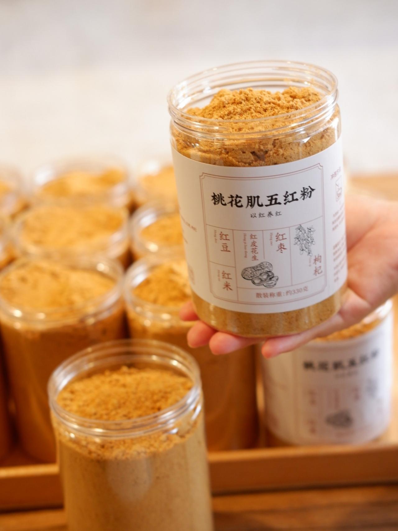 五红粉,以红养红,养出好气色 建议女生每月至少喝7天!补气养血五红粉,最明显的作用就是补气养血,其所含的红枣、红皮花生、红豆、红米、枸杞,都能养脾补益气血, 能渐复正气,提高机体免疫力,有助于改善气虚和贫血,比较适合贫血症、气虚者、产妇、体虚者,可以调理身体,增强体质 五红粉的组成与功效: - 花生:红皮的花生衣有养血止血的功效。 - 红豆:补血促进血液循环的作用。 - 枸杞:补肝养肾。 - 红枣:健脾补血的作用。 - 红米:铁元素高预防贫血。 功效:改善宫寒痛经,补血养血,改善气色。 适合人群:气色不好的人,贫血的人,产后调养的女性, 大病久病后体虚的人 五红粉,以红养红!气血是身体健康的根本,气血充盈,身体才能健康! 女性在经期、孕期、哺乳期时都很容易气血不足,而对于气血不足的姐妹,五红粉是一个补气血的好选择, 所以我们要常备五红粉,以红养红,养出来的美才是真的美。慢慢调理,有耐心坚持喝,能一定程度上改善贫血、气血不足的情况。 五红粉,以红养红,养出好气色. 五红粉是由传统食养方子“五红汤”改良来的,很适合女孩子喝,既养气血又养脾胃,红豆、红米、红枣、枸杞、红皮花生五种红色食材研磨成粉. 气血是身体健康的根本,气血充盈,身体才能健康!女性在经期、孕期、哺乳期时都很容易气血不足, 而对于气血不足的姐妹,五红粉是一个补气血的好选择,所以我们要常备五红粉,以红养红,养出来的美才是真的美。 慢慢调理,有耐心坚持喝,能一定程度上改善贫血、气血不足的情况。