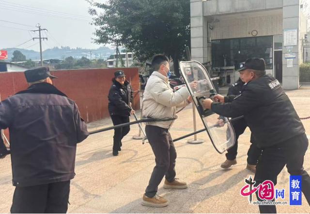 为切实提升校园安全防范水平,增强安保人员应对突发暴力事件的快速反应和协同处置能力,筑牢校园安全第一道防线,近日,宜宾市第八中学校组织开展了以“歹徒强行闯入校园”为模拟情景的校门安全防暴应急演练。