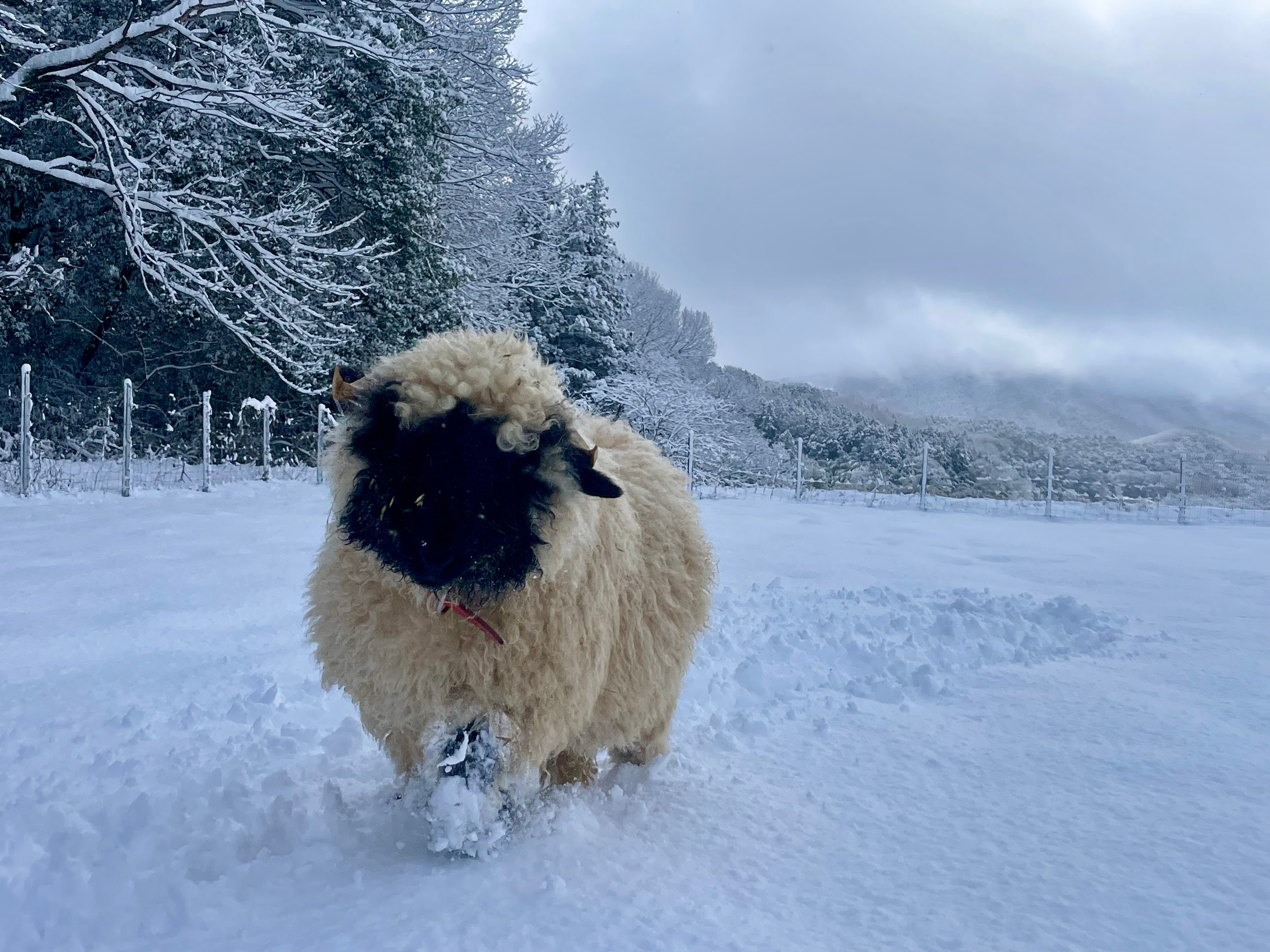 瓦莱州黑鼻绵羊 不像小羊,像一只黑脸小狗在雪地撒欢!