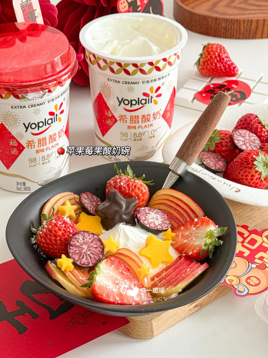 希腊酸奶+小苹果+ 树莓+芒果+红参果
