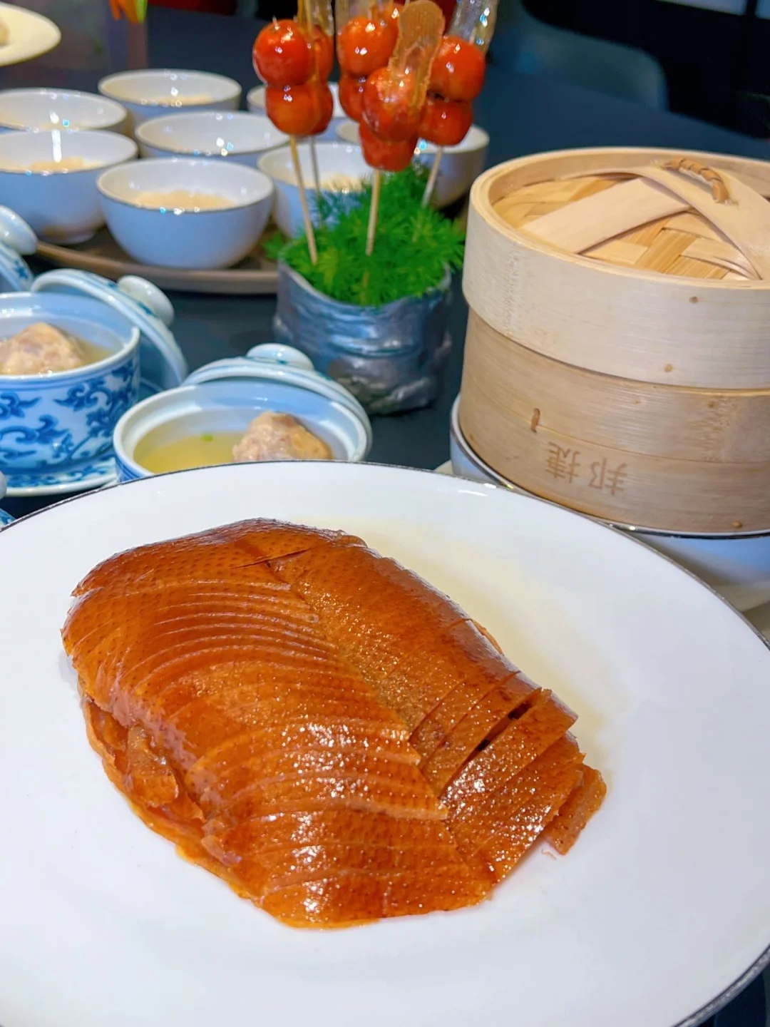 酥不腻烤鸭5.0果然名不虚传,鸭皮脆到咬下去“咔嚓”响,低脂少油一点不腻,蘸白糖吃满口脂香回甘,卷着荷叶饼配葱丝甜酱,经典味道永远吃不腻~