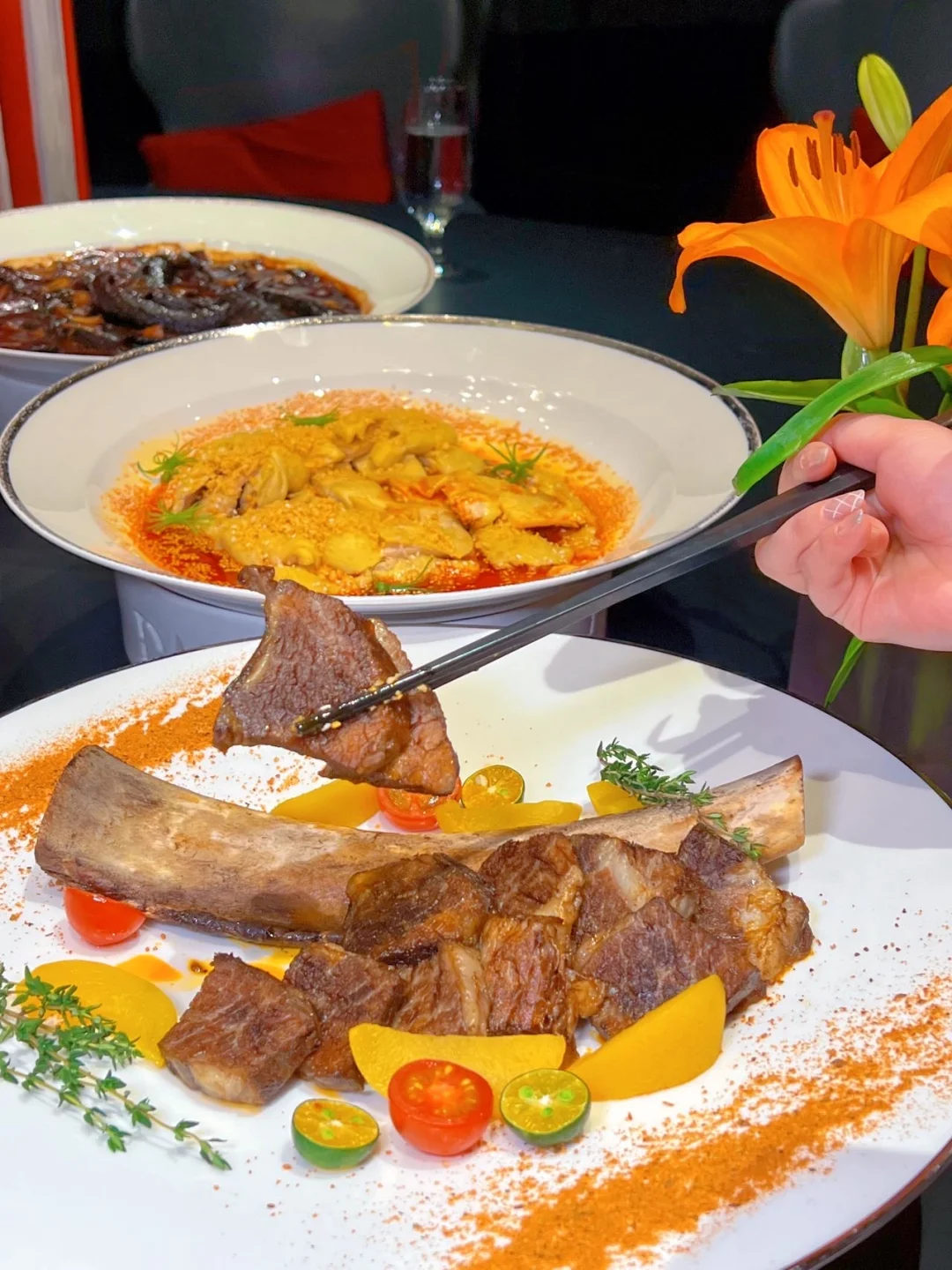 现代中式风太戳我,古典雅致又带点时尚感,私密感拉满,谈业务完全不被打扰~ 还有专属服务员全程跟着,换骨碟、分菜都超及时!