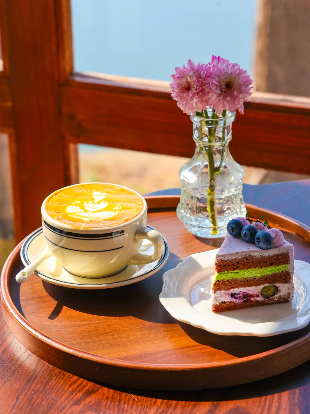 沿湖的咖啡小店,布置的甚是雅致,分为二层,一楼是制作咖啡奶茶的主调制区,有可以翘