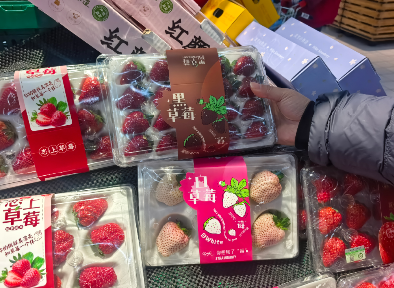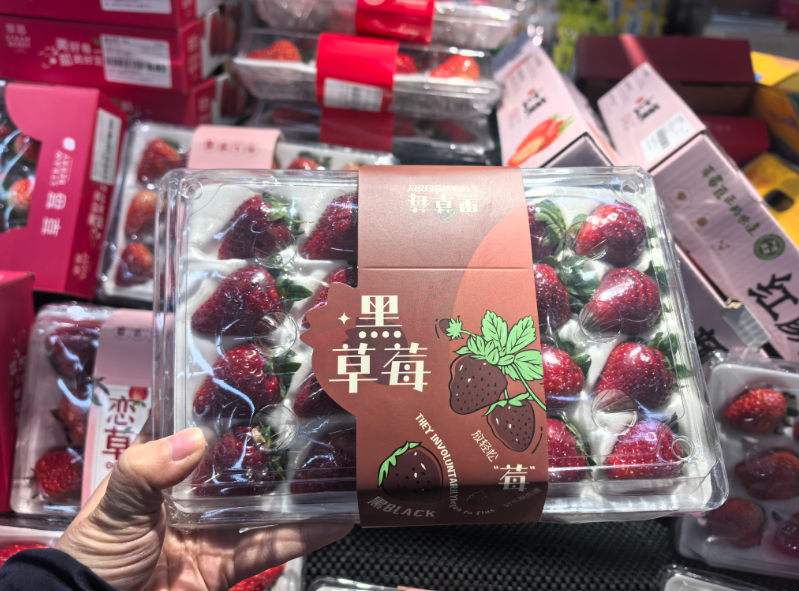 在大润发金陵西路店水果区,“黑草莓”被陈列在草莓专柜的显眼位置,深紫红色的果实在灯光映衬下格外诱人,不时吸引市民驻足挑选。“样子特别,甜度也高,买来给家里人尝个新鲜!”市民张女士一边将一盒“黑草莓”放入购物车,一边向记者表示。她称,考量到“黑草莓”宣称的富含花青素及独特口感,愿意为这份“高品质”和“新鲜感”买单。记者观察发现,像张女士这样的“尝鲜派”不在少数,不过,也有不少消费者在柜台前对比价格后选择了传统品种。
