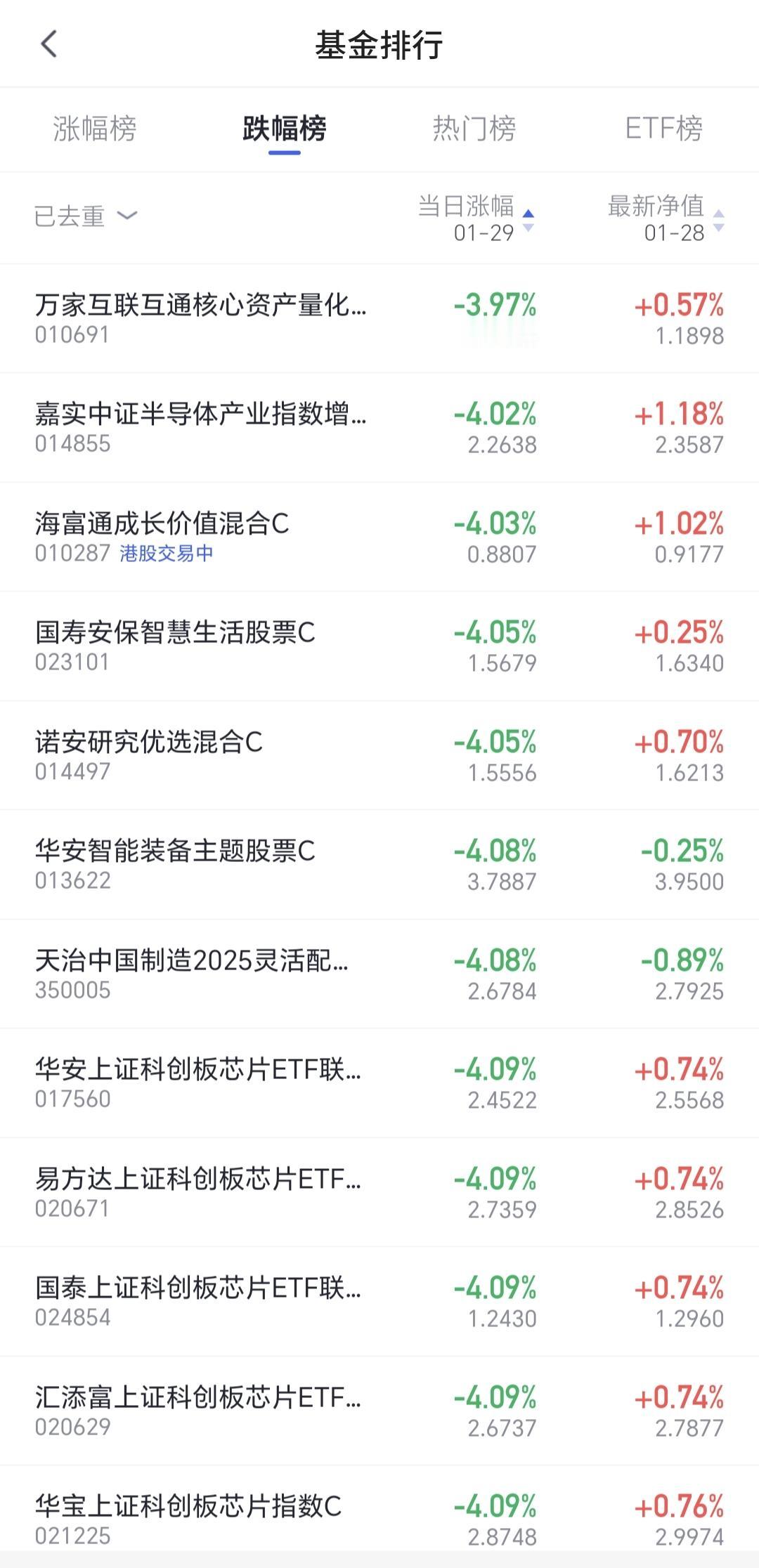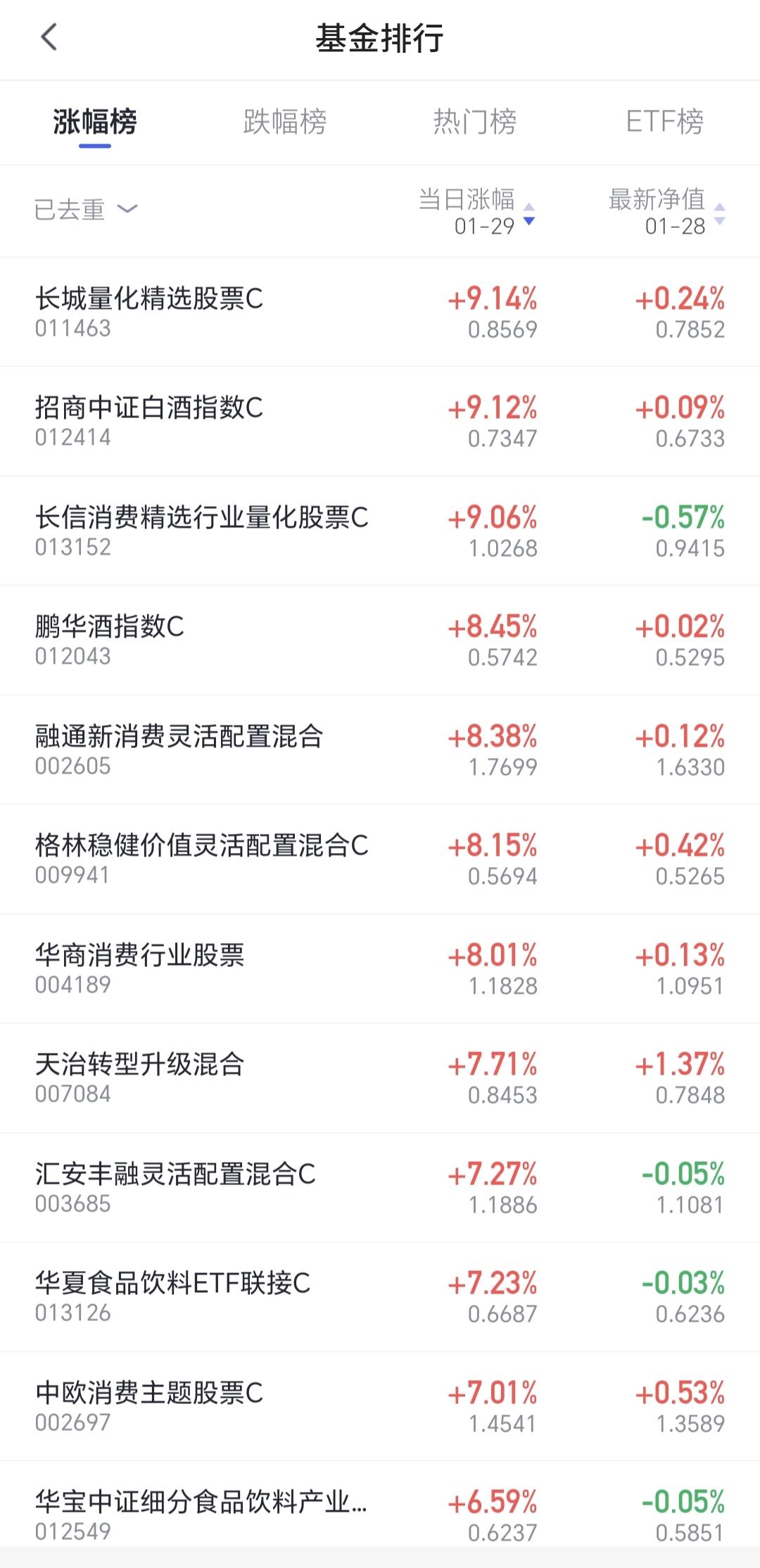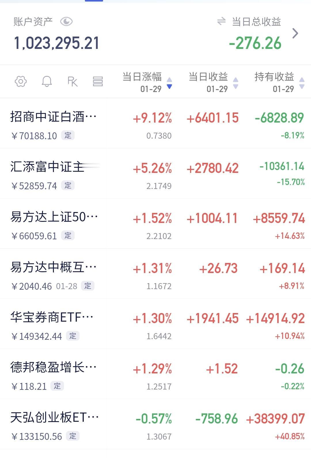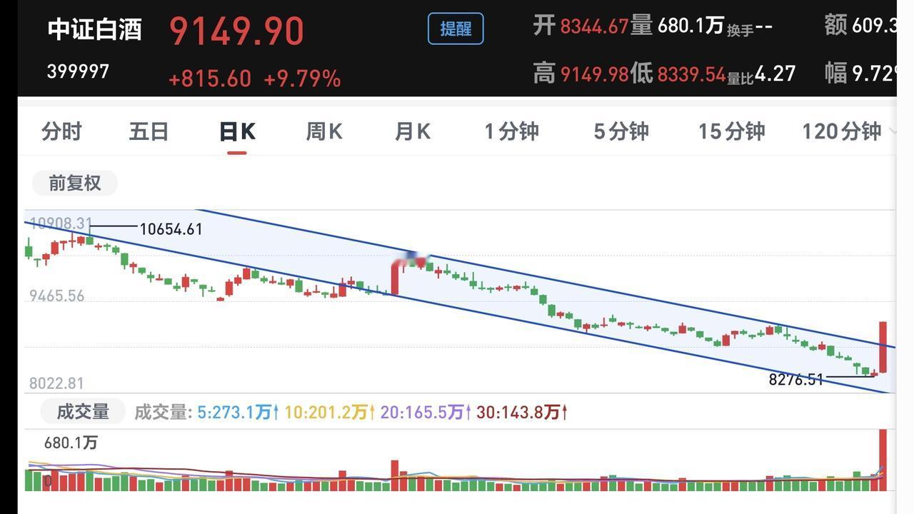 基金:再一次止盈的前提条件 今天市场全天小幅度震荡,收盘的时候指数涨跌不一,创业板指下跌了0.57%,收于3304点,上证指数上涨了0.16%,收于4157点。 整个股票市场,上涨1806家,下跌3571家,涨停90家,跌停37家,上涨家数少于下跌家数。 今天两市累计成交32300亿,相比于昨天放量了9%,主力资金净流出887亿。 持有的基金中,下午收盘的时候,估值上涨幅度最大的三个板块是:白酒板块,大消费板块,上证50板块,估值下跌幅度最大的三个板块是:芯片半导体板块,军工板块,5G板块,估值整体亏损了276元。 整个基金市场,上涨11319家,下跌8204家,上涨幅度超过5%的92家,下跌幅度超过5%的7家。 图9是今天基金的上涨排行榜,图10是今天基金的下跌排行榜,图11是ETF上涨幅度排行榜,图12是今天基金的加仓榜,图13是今天基金的减仓榜。 1:今天黄色线上窜下跳,上午黄色线在上,蓝色线在下,下午是黄色线在下,蓝色线在上,这也是今天没有能够持续上涨的原因。 2:今天成交量放大9%,市场整体是高位震荡,资金有出逃的嫌疑,主力资金最近都是持续净流出,而且净流出的金额不小。 3:收盘的时候五天线位置是4143点,收盘点位4157点,收在五天线之上,只要能够收在五天线之上,就不要主观地认为市场已经走坏。 4:看下面的截图14,这是主力资金进出板块的情况,主力资金净流入最多的三个板块是:传媒板块,食品饮料板块,白酒板块,主力资金净流出最多的三个板块是:高端制造板块,电子板块,信息技术板块,今天主力资金净流入食品饮料和白酒板块都超过了90亿以上,这也引发了今天白酒板块的大涨,但今天的大涨并不能确定这个板块已经反转,需要观察有没有资金持续净流入,我们只要坚持定投就可以了,连续下跌超过五年的板块,不可能在一夜之间反转直接向上的。 5:看下面的截图15,这是上证指数日K线图,你看一下3815点到4190点期间的上涨速度,再看看最近一段时间的上涨速度,是不是上涨速度明显下降了,如果以现在这样的速度继续上涨到前高4190点附近,那里可能会形成一个相对大一点级别的高点,当然,4190点绝不可能是2026年的最高点,今年还会再创新高,而且会在4190点上方很远的地方,这也是我说最近有可能进行这一次止盈的主要原因。 6:看下面的截图16,这是白酒板块日K线图,今天的上涨突破了下跌通道上轨线,是不是有效突破还需要确认,需要观察后面的走势,许多人在问,今天可不可以进场白酒板块,我只能告诉你的是,日线级别短线下跌趋势被改变的可能性很大,但这只是概率的问题,并不是100%已经改变了下跌趋势,何况周线级别和月线级别还是下跌趋势中。 我喜欢潜伏,我不喜欢追高,这是很多人知道的,我喜欢平平淡淡,我不喜欢大起大落,像白酒板块今天的大涨,并没有让我兴奋,我的心态很平静,低位区域横盘震荡的时间越长,对我们定投的人来说是越友好,可以让我们捞到更多便宜的筹码,不要想着在某一个板块当中挣大钱,均衡配置才是更重要的。 大家帮忙评论,点赞,转发和分享,谢谢大家的支持。
