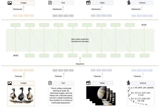 Nature编辑点评这项研究:Emu3仅基于预测下一个词元(Next-tokenprediction),实现了大规模文本、图像和视频的统一学习,其在生成与感知任务上的性能可与使用专门路线相当,这一成果对构建可扩展、统一的多模态智能系统具有重要意义。