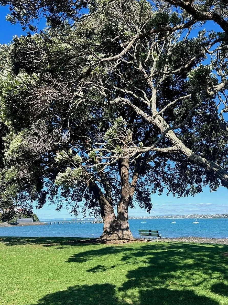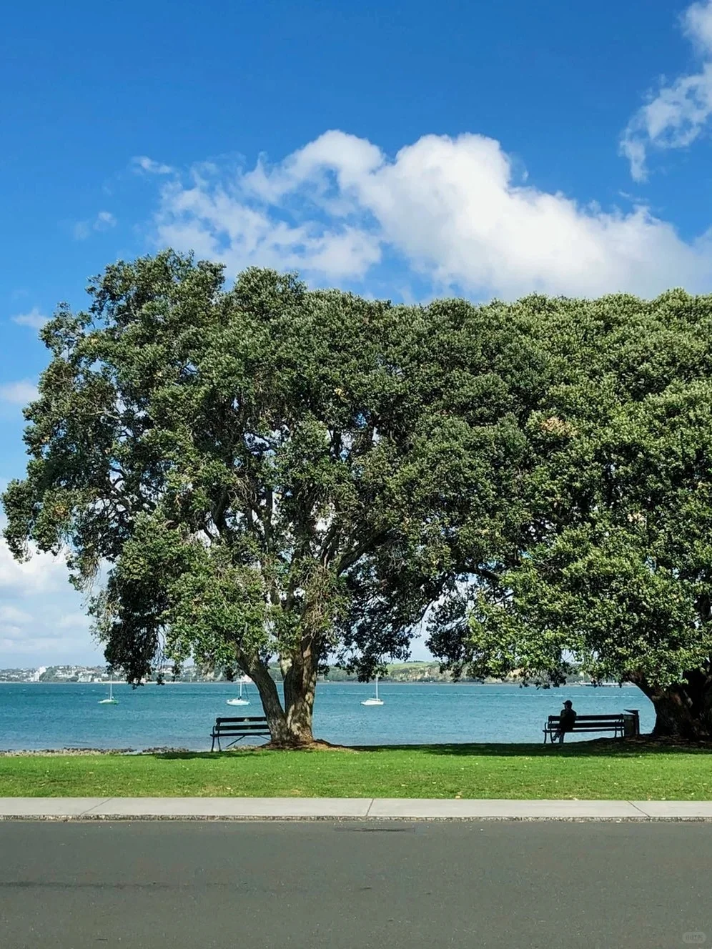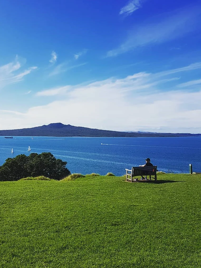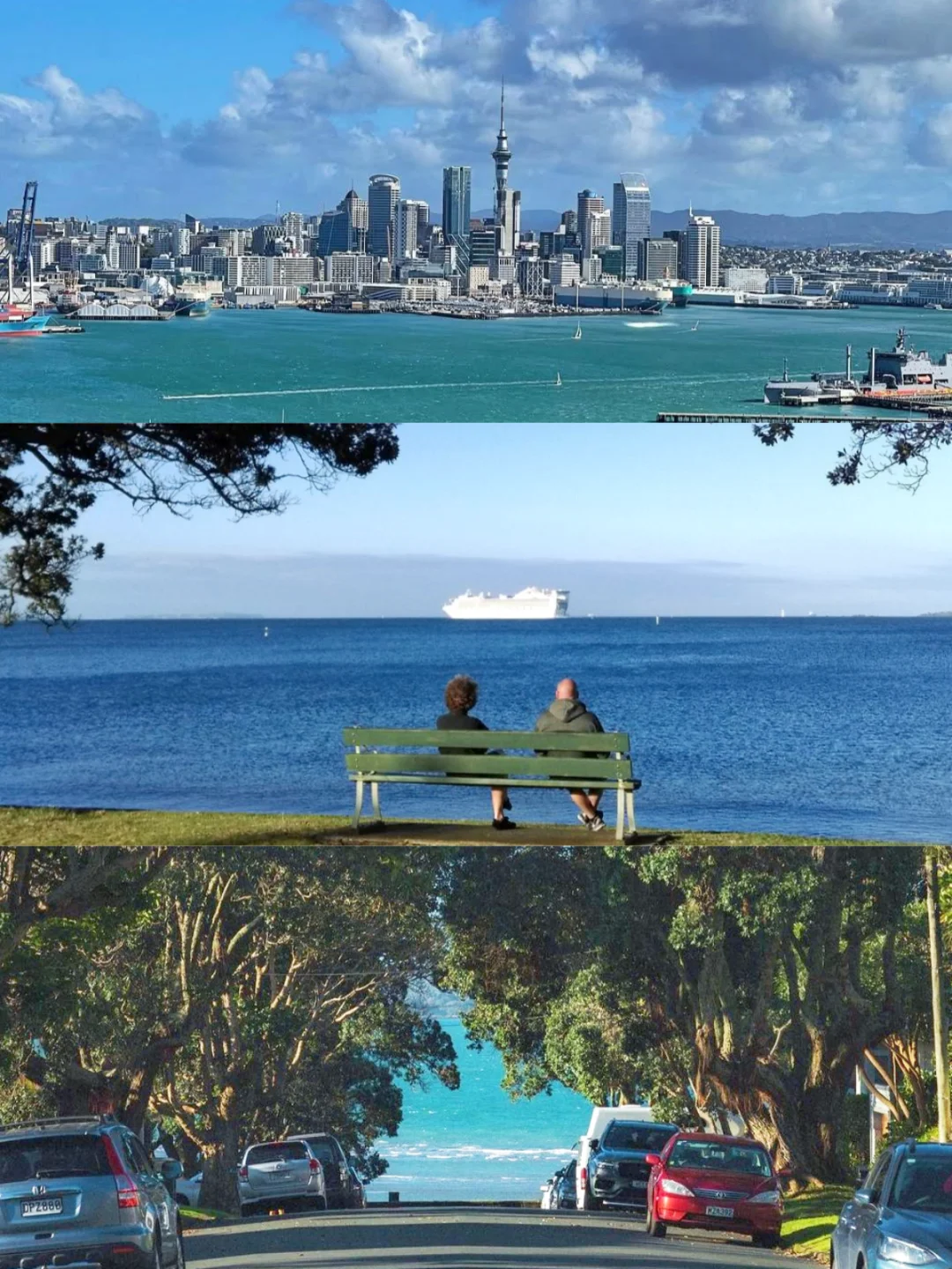 👉图②→远眺Rangitoto lsland的长椅,这条✅长椅对比那条网红椅子,人少,不会拍到乱糟糟的房屋,还能拍到❗360度视角海景,不非要天空塔不如来这里??
