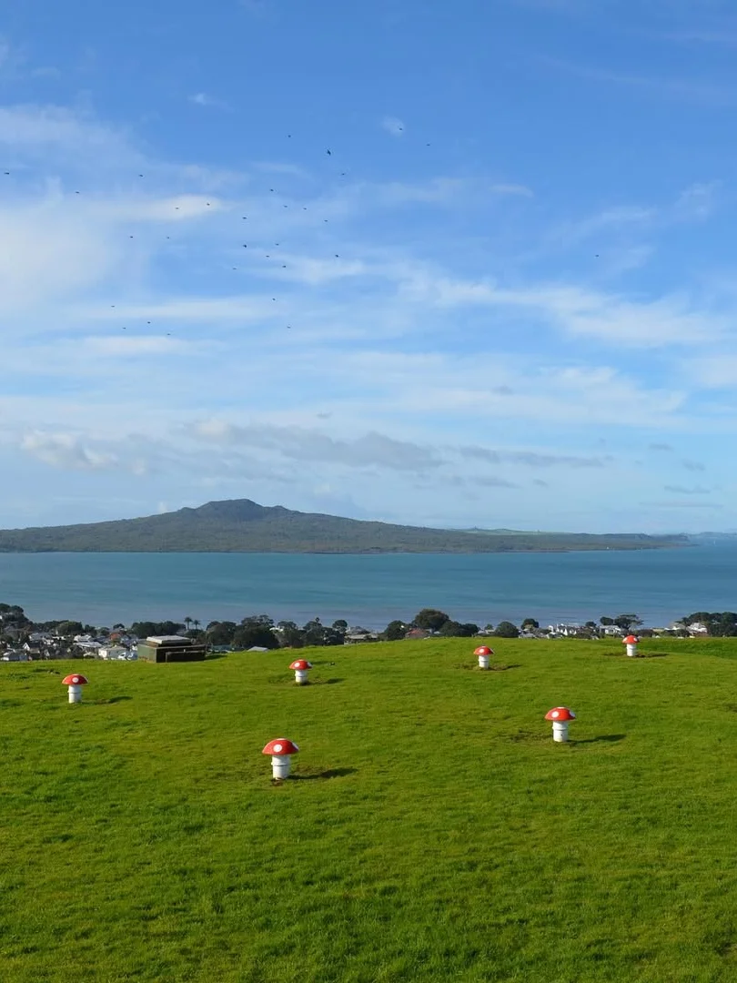 👉图⑦⑧⑨→德文港能和奥克兰天空塔合影的那把长椅就在维多利亚山上~想要纯拍风景可以绕右,✨还有一片特别出片的蘑菇草坪