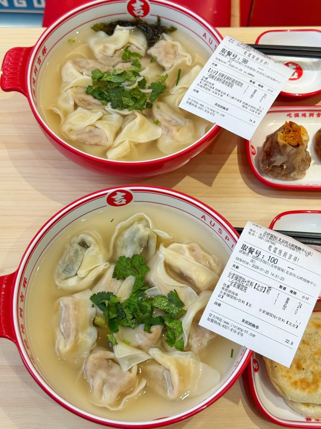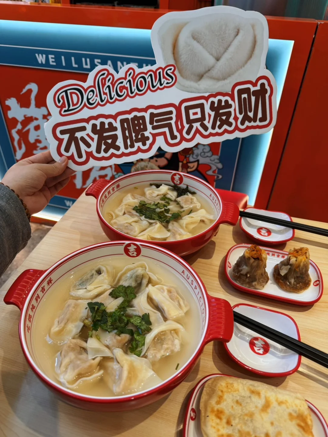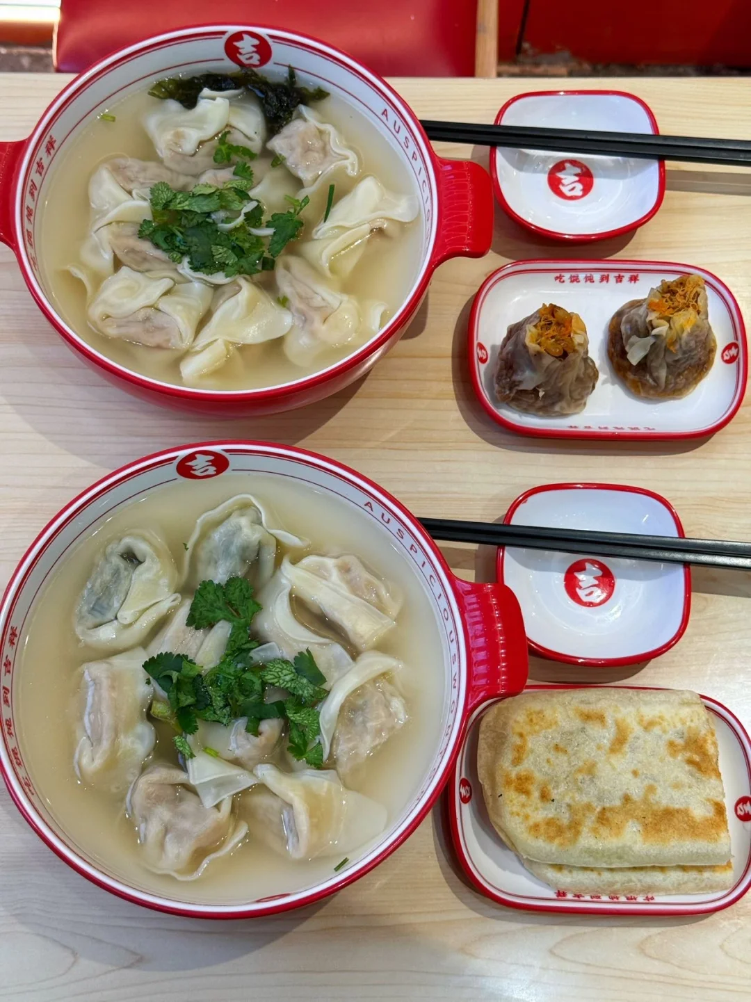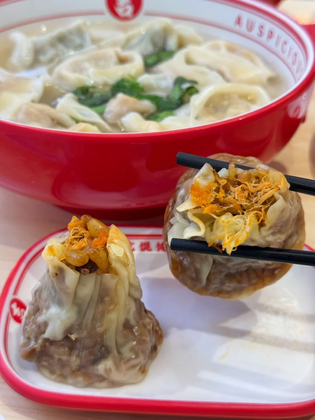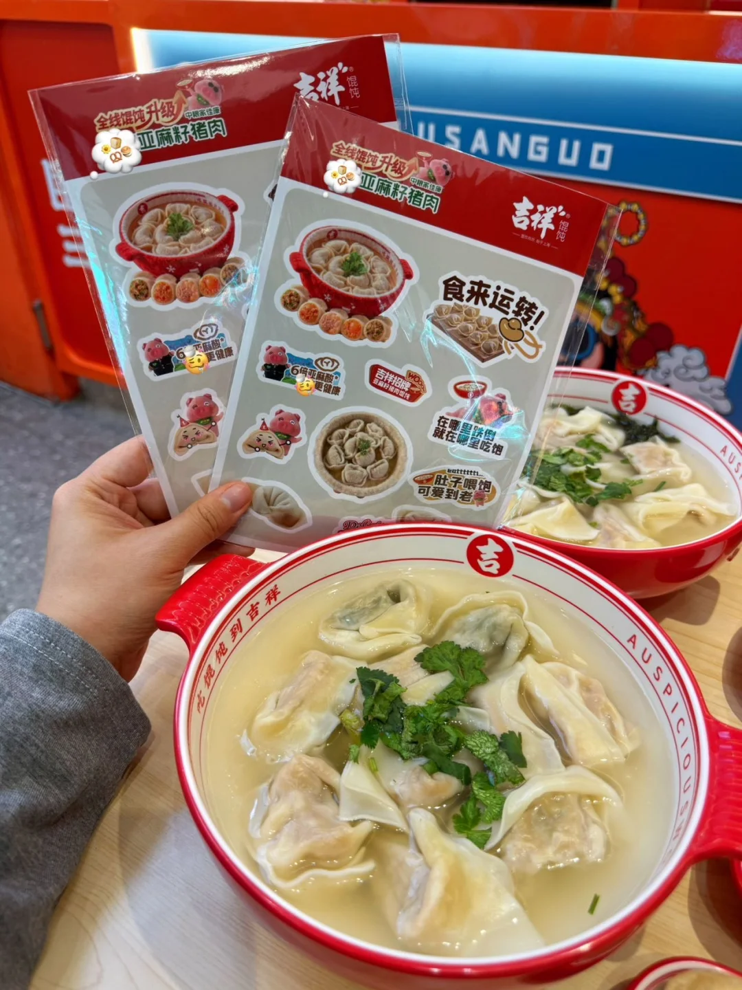 吉祥门店全线馄饨升级啦!猪肉换成中粮家佳康亚麻籽猪肉,商超里老贵的肉居然用来做馄饨,性价比直接拉满~ - 我每次来必点✔全家福馄饨 一碗五种口味,选择困难症狂喜!升级后的肉馅超实在,咬开爆汁,肉香醇厚还带着谷物清香,香而不腻。 ✔招牌亚麻籽猪肉馄饨也巨nice~ 馅料饱满,原汤就能吃出自然肉香。 - 可以再搭配蛋黄烧麦,掰开露出大颗蛋黄,咸香软糯;香酥肉饼外脆里嫩,一口馄饨一口饼超满足。 - 新年吃全家福寓意吉祥,暖乎乎的一碗下肚,幸福感爆棚~