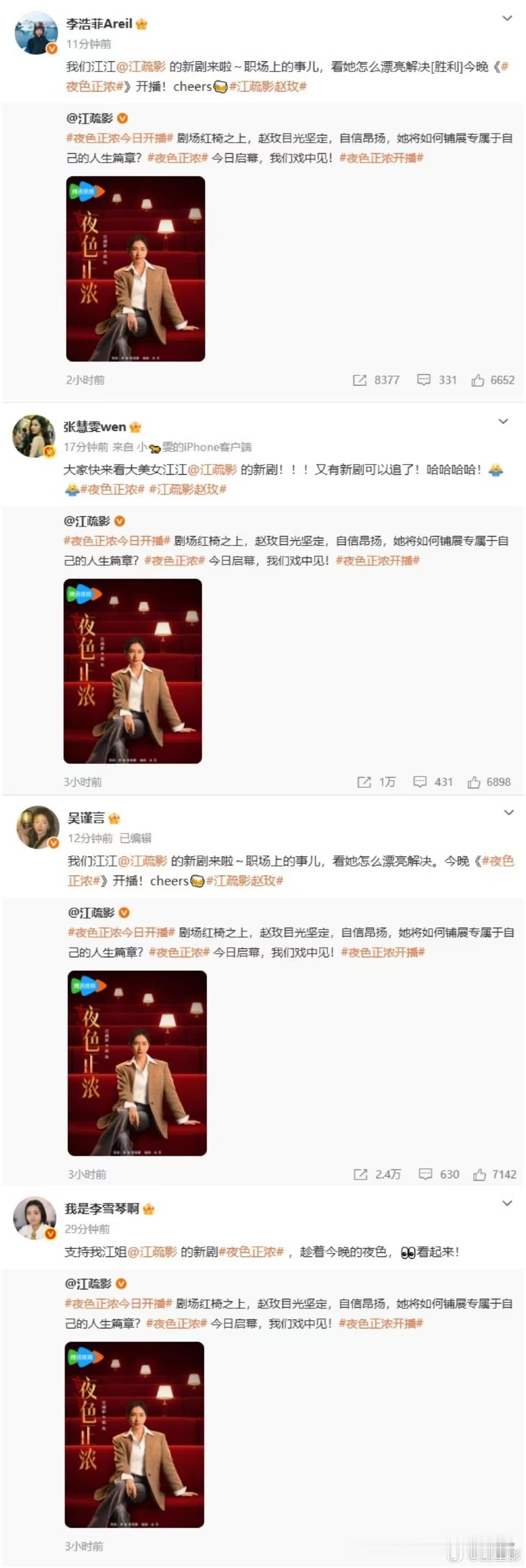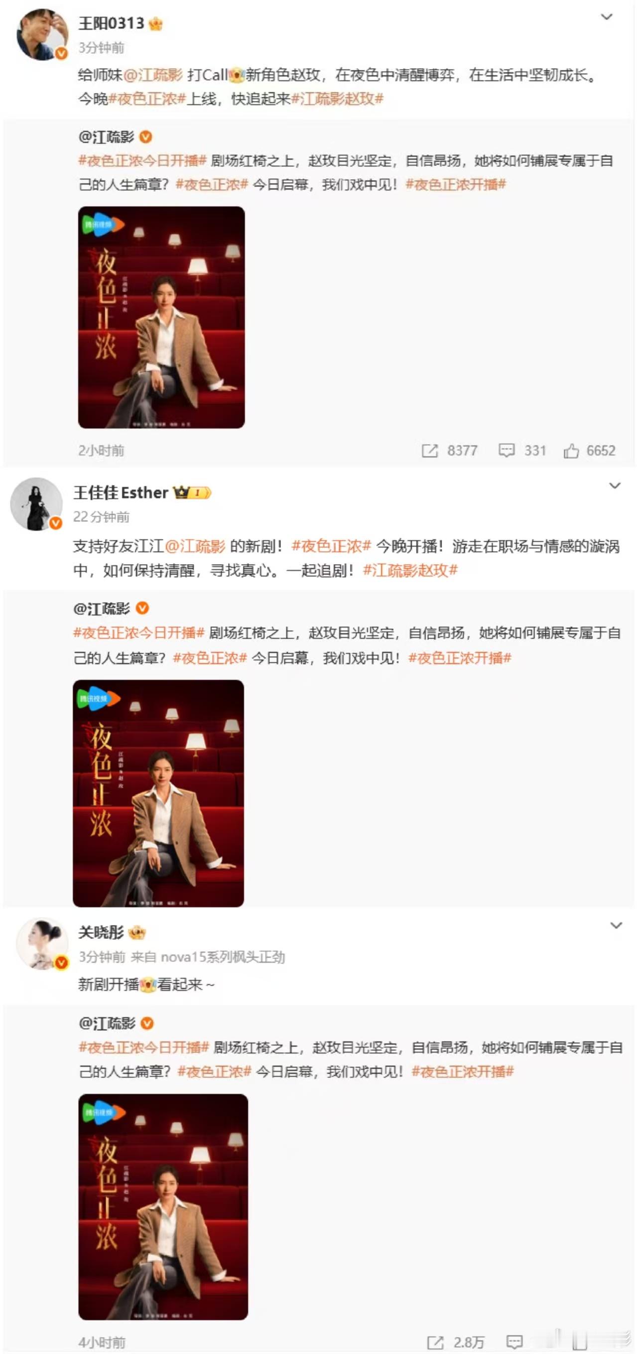 江疏影内娱人脉 《夜色正浓》开播受到了很多朋友们的支持了呀,真的是很欣赏江疏影内